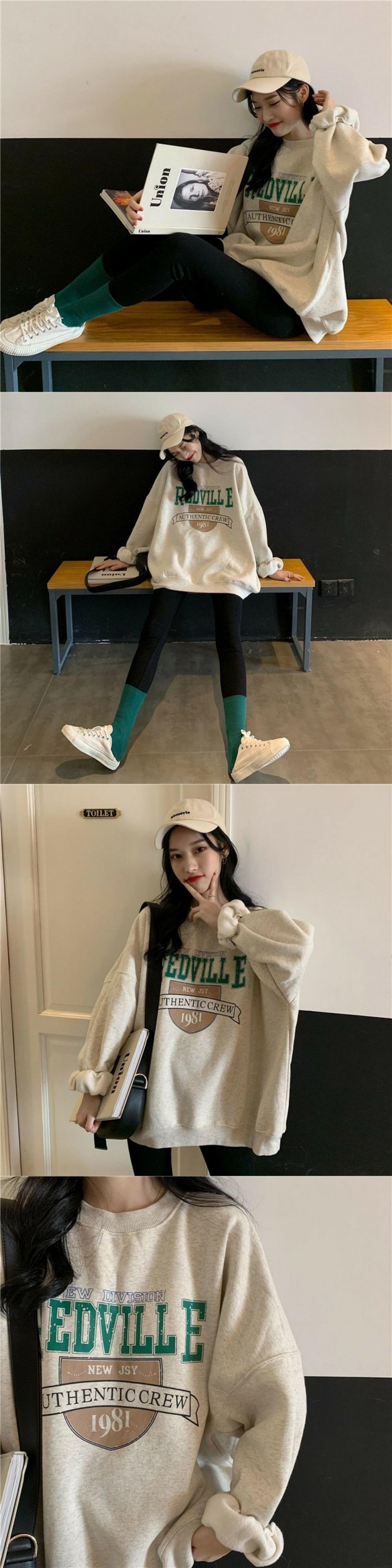 バージョンのルーズプラスベルベット長袖プルオーバーセーター女性2019秋と冬の新しい怠惰なスタイルの学生プリントトップイン クレセントシティ57701578101