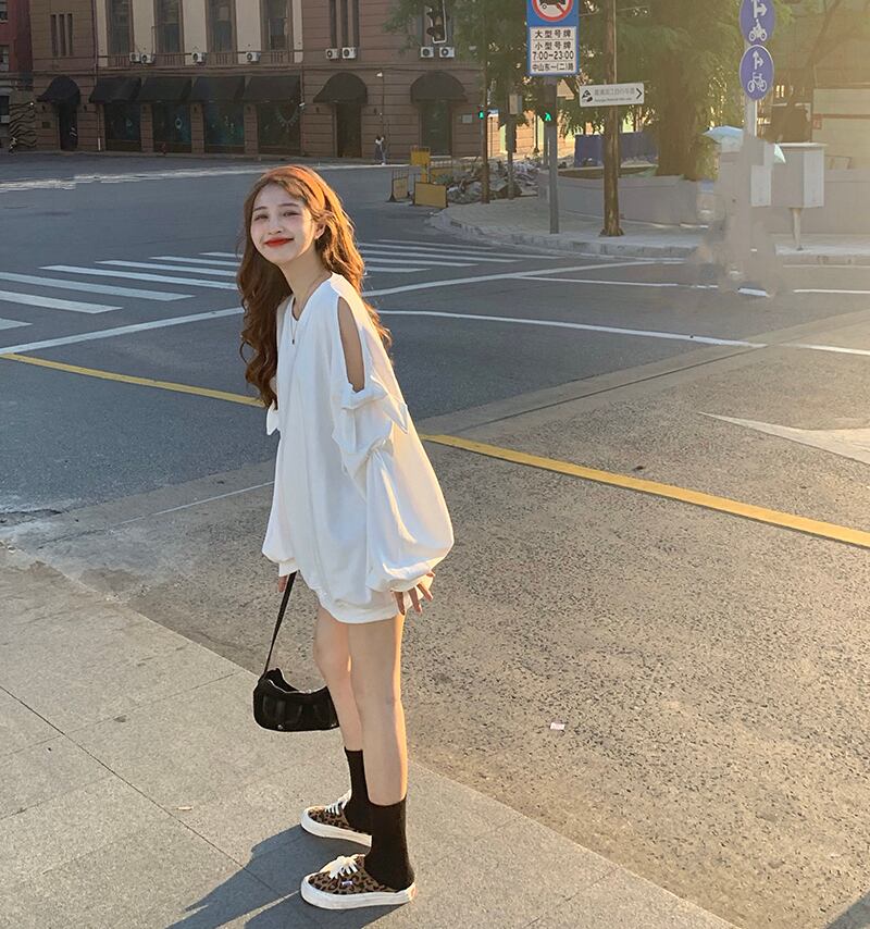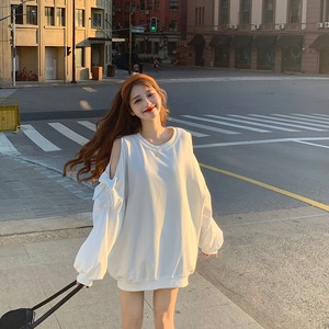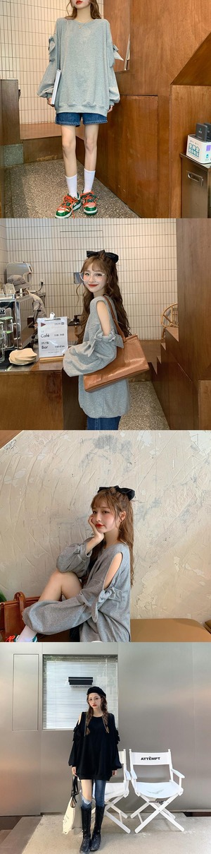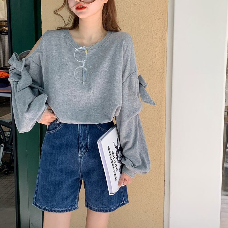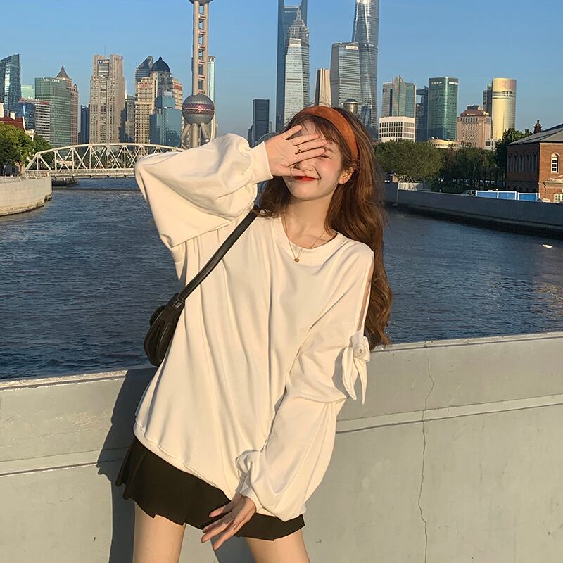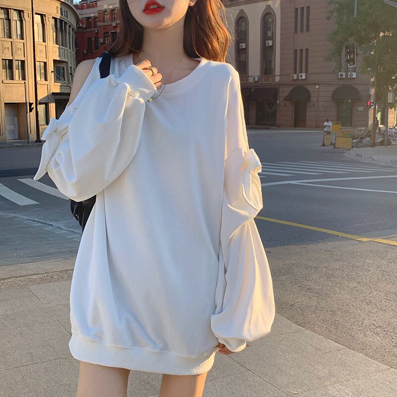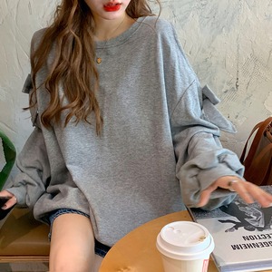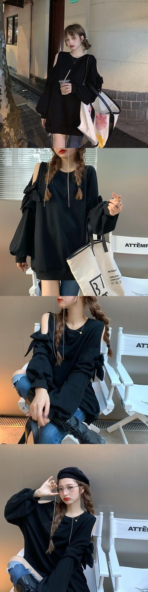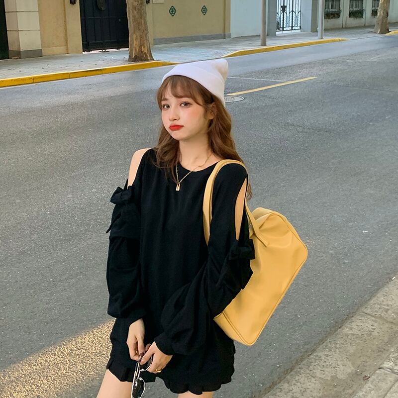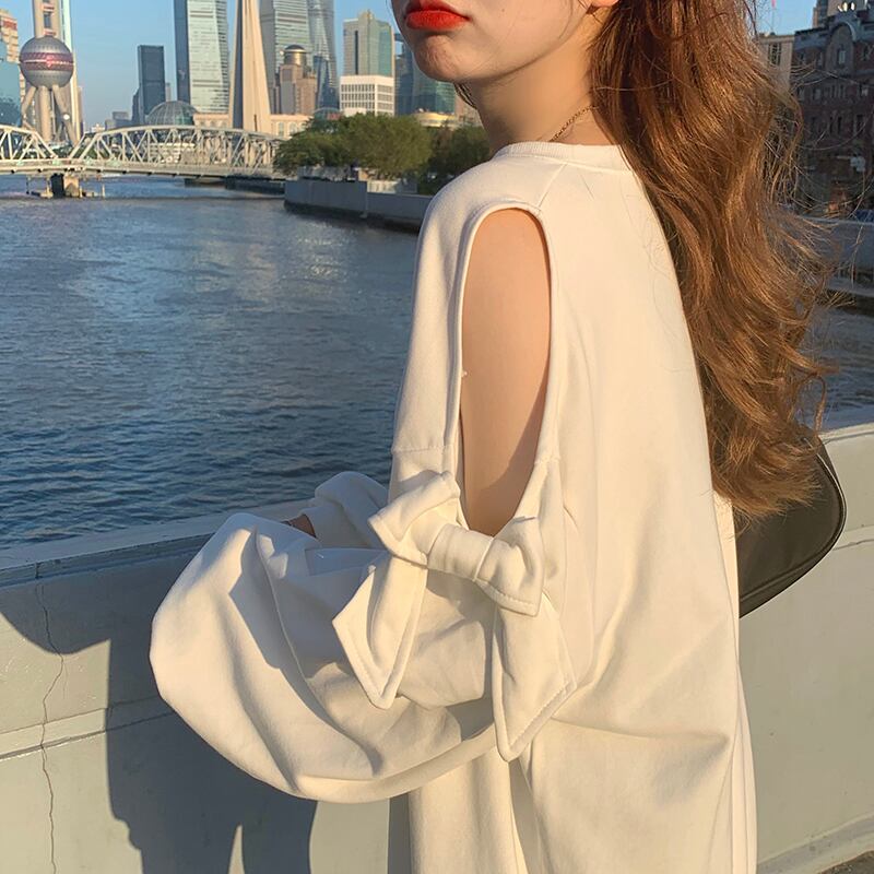 ピュアカラー長袖セーター女性の2020年初秋の新しいストラップレスの弓デザイン感覚緩いミドル丈トップ クレセントシティ73813455623