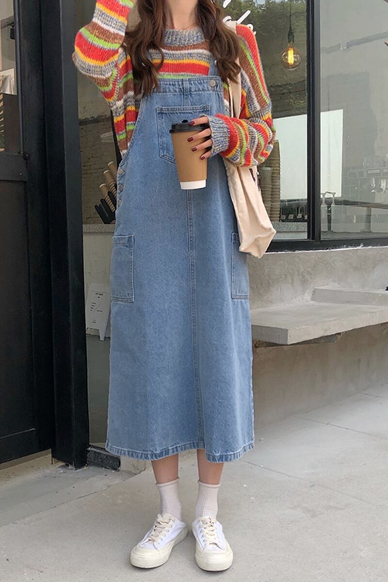 春のドレスの女性2020新しいシックなオールマッチカジュアルファッションルーズで薄いデニムストラップスカートロングスカート クレセントシティ45126501116