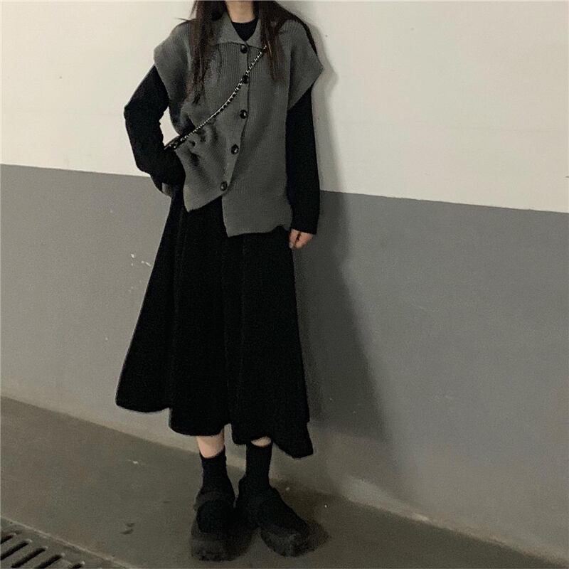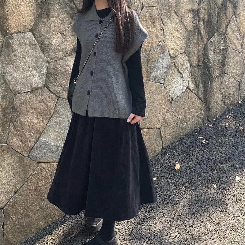 スーツの女性2020年初秋の新しいニットベストベスト+コーデュロイの緩いAラインスカートトレンド クレセントシティ57338461584
