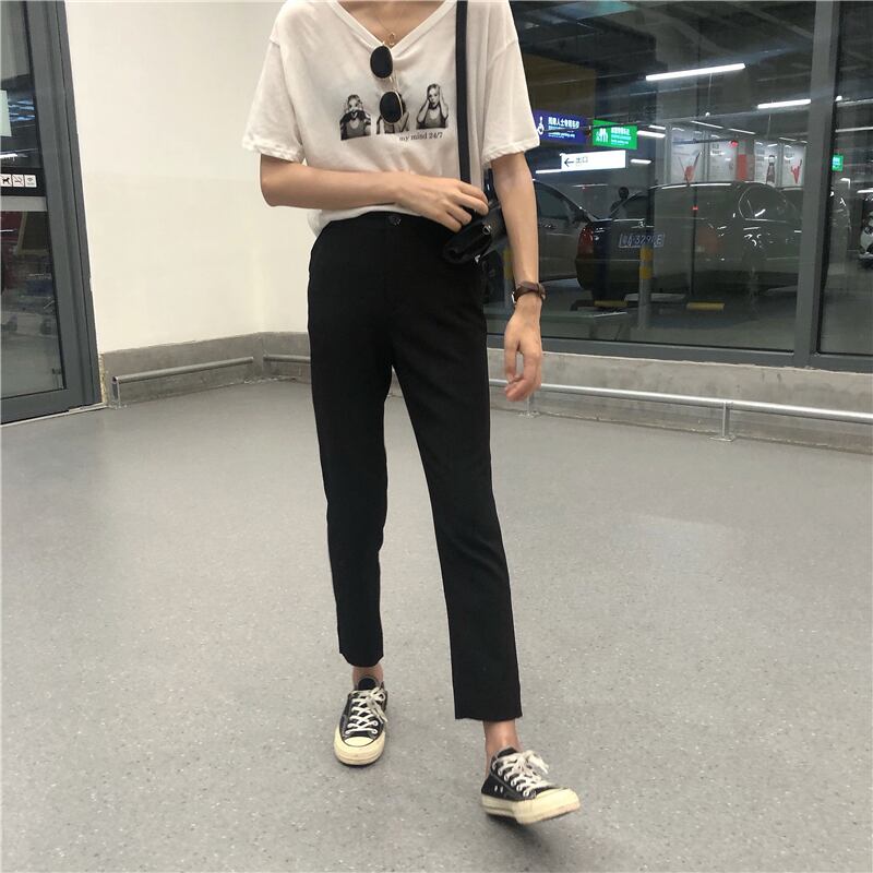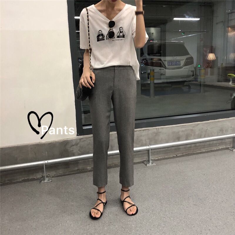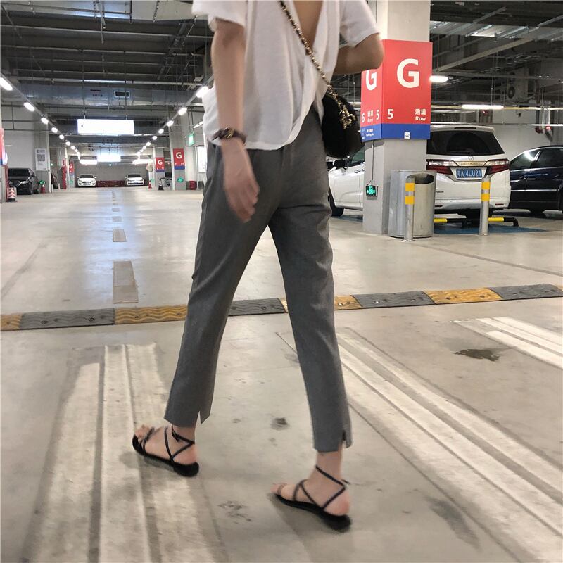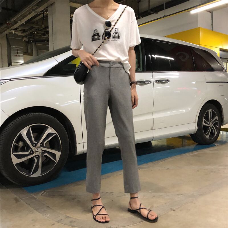 2020年秋新作スリムハイウエストスリムカジュアルパンツオールマッチスーツストレートパンツ女子学生9点パンツ クレセントシティ5320956924