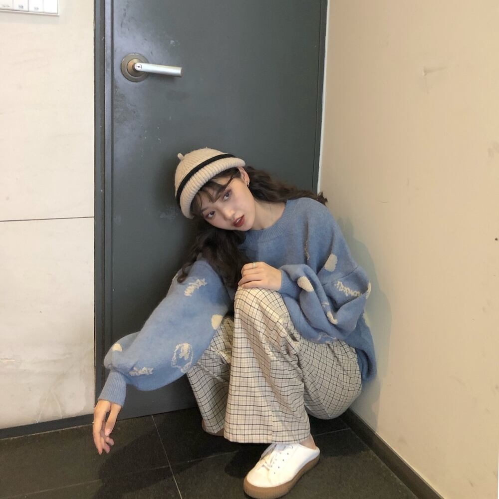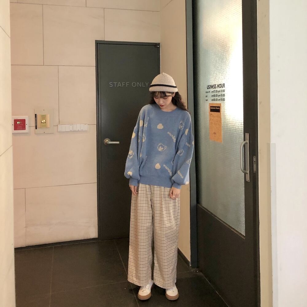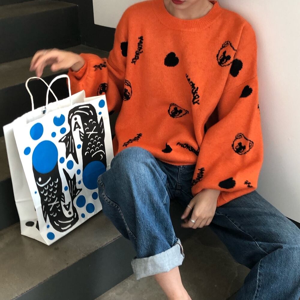 ベアレターセーターレディース2020年初秋新入生ゆったり丸首シックカジュアル薄手ニットセーター クレセントシティ51533548808