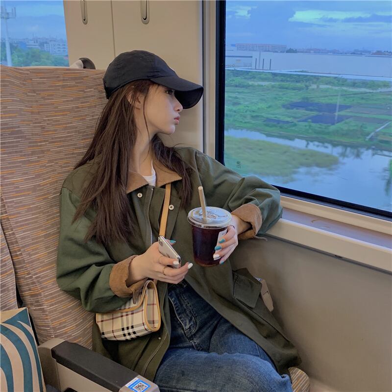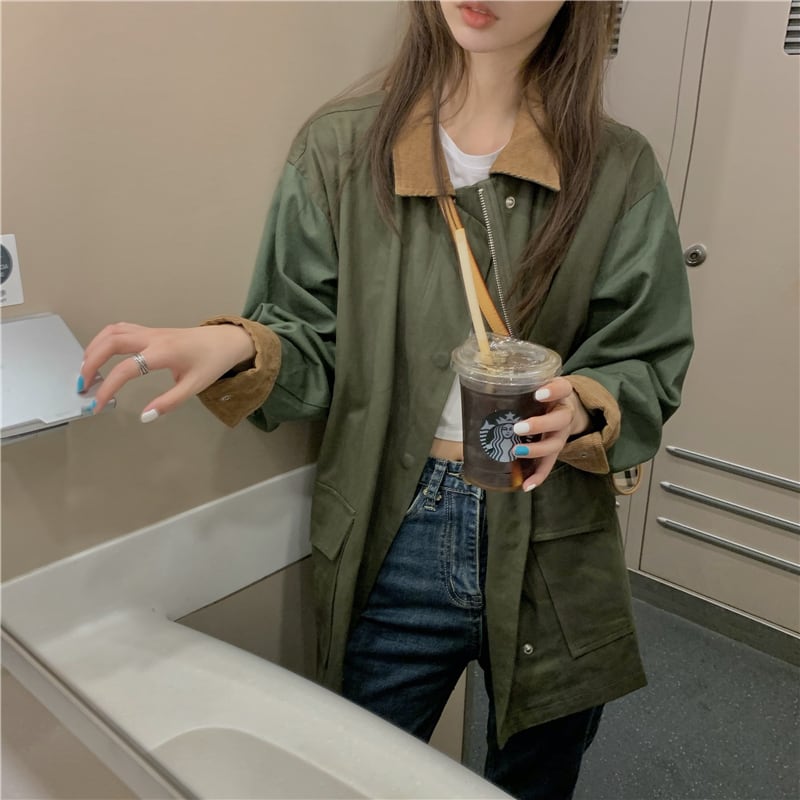ルーズパッチワークオーバーオールウインドブレーカーレディース2020年初秋新作ルーズミドル丈レトロカジュアルストリートジャケットトレンド クレセントシティ5525327514
