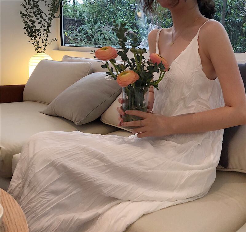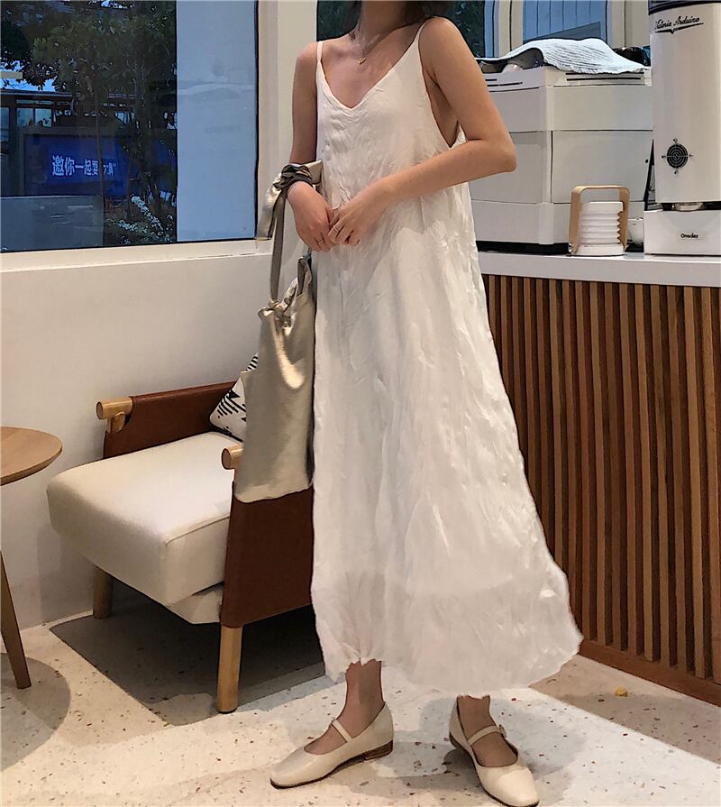白いサスペンダードレスの女性の夏緩い膝丈膝丈のミドル丈ベストスカートボトムスドレス クレセントシティ26885592143
