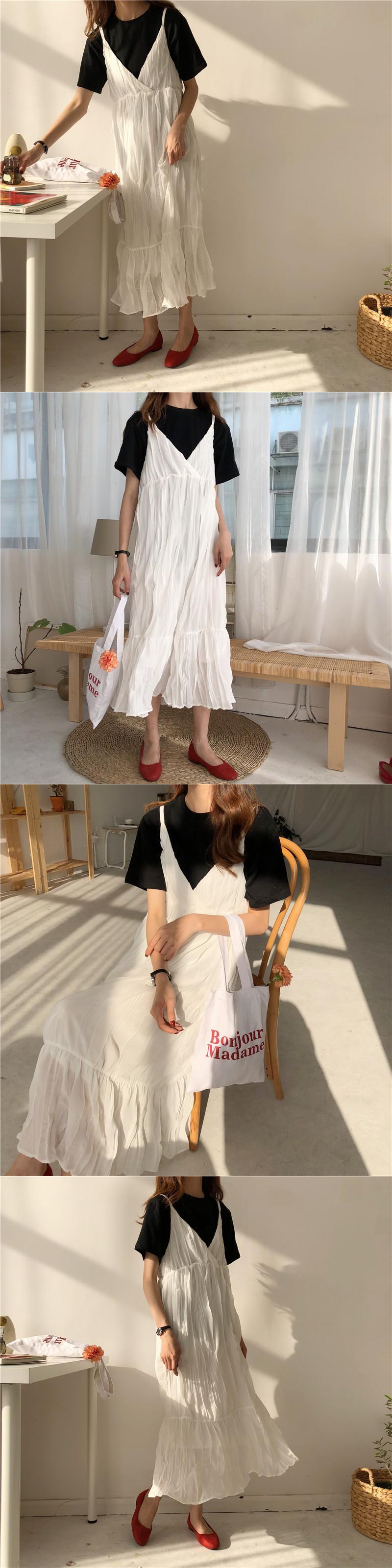 白いスリングドレスの女性の夏のミドル丈のウエストと薄いボトムスのスカートプリーツ甘い気質の妖精のドレス クレセントシティ58482564437