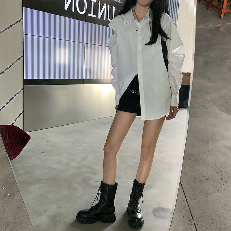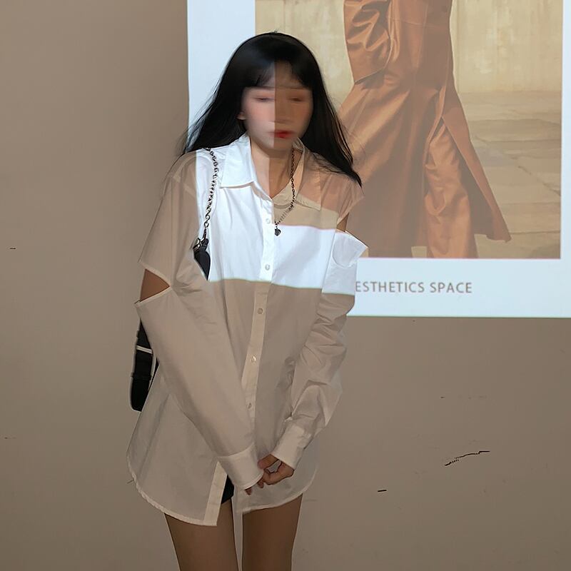 ニッチな白いシャツの女性の2020年秋の新バージョンのルーズで多目的なカジュアル長袖トップス クレセントシティ57880692212