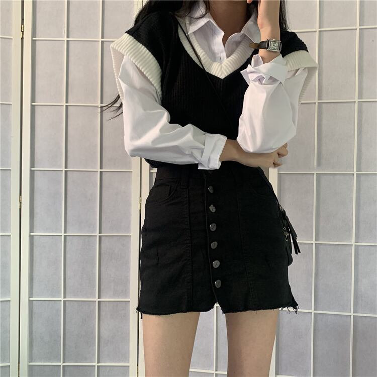 対照的な色のニットチョッキ女性2020年秋の新しいシックなルーズワイルドノースリーブチョッキセーター クレセントシティ62225753035