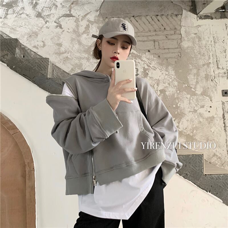 レイジースタイルデザインセンスホールストラップレスセーター女性秋2020新しいバージョン緩い野生のジッパートップトレンド クレセントシティ64417607039