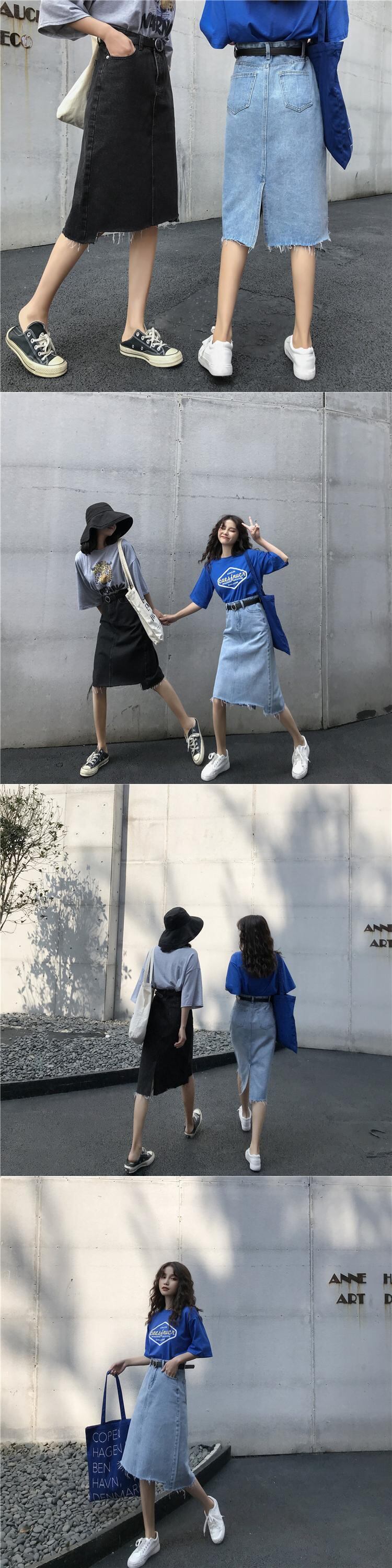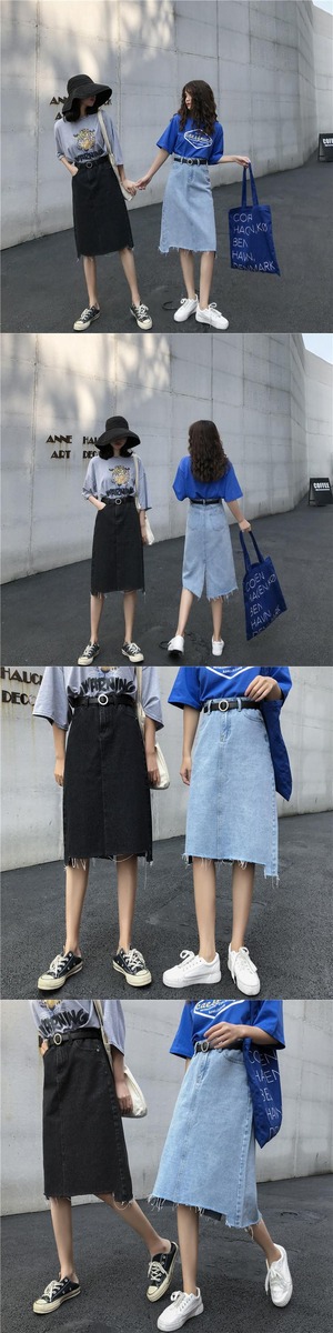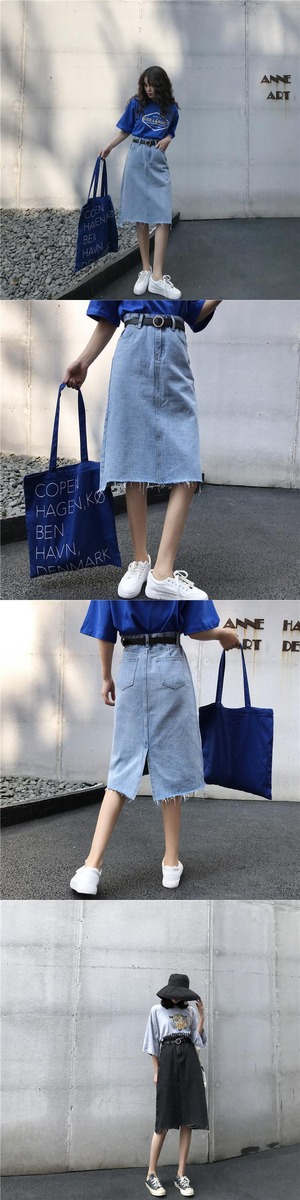 不規則な破れたスカートの女性の2020年春と夏のハイウエストスリムミドル丈Aラインスカートデニムスカートの新しいバージョン クレセントシティ70574079864