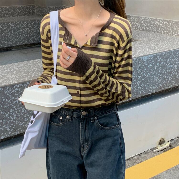 縞模様のセーター薄い女性の2020年初秋の慎重なマシンの学生緩い、薄い新しいカジュアルなカーディガンのトレンド クレセントシティ63342484767
