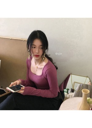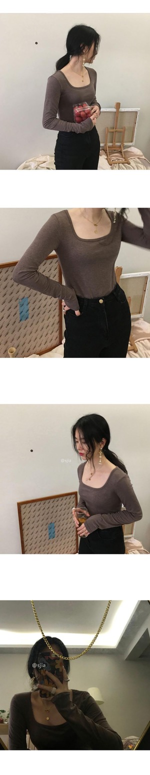 純色ニット長袖Tシャツレディース初秋2020年新しいシックなスリムストレッチ気質スクエアカラートップイン クレセントシティ61917946638