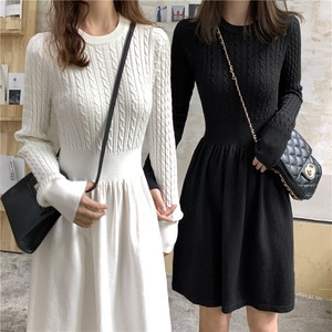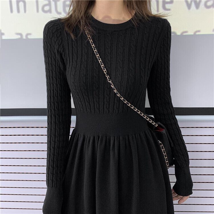 秋と冬のニットドレスレディース2020新しいバージョンのウエストスリムレトロなツイストラウンドネックボトムスセータースカート クレセントシティ79163860016