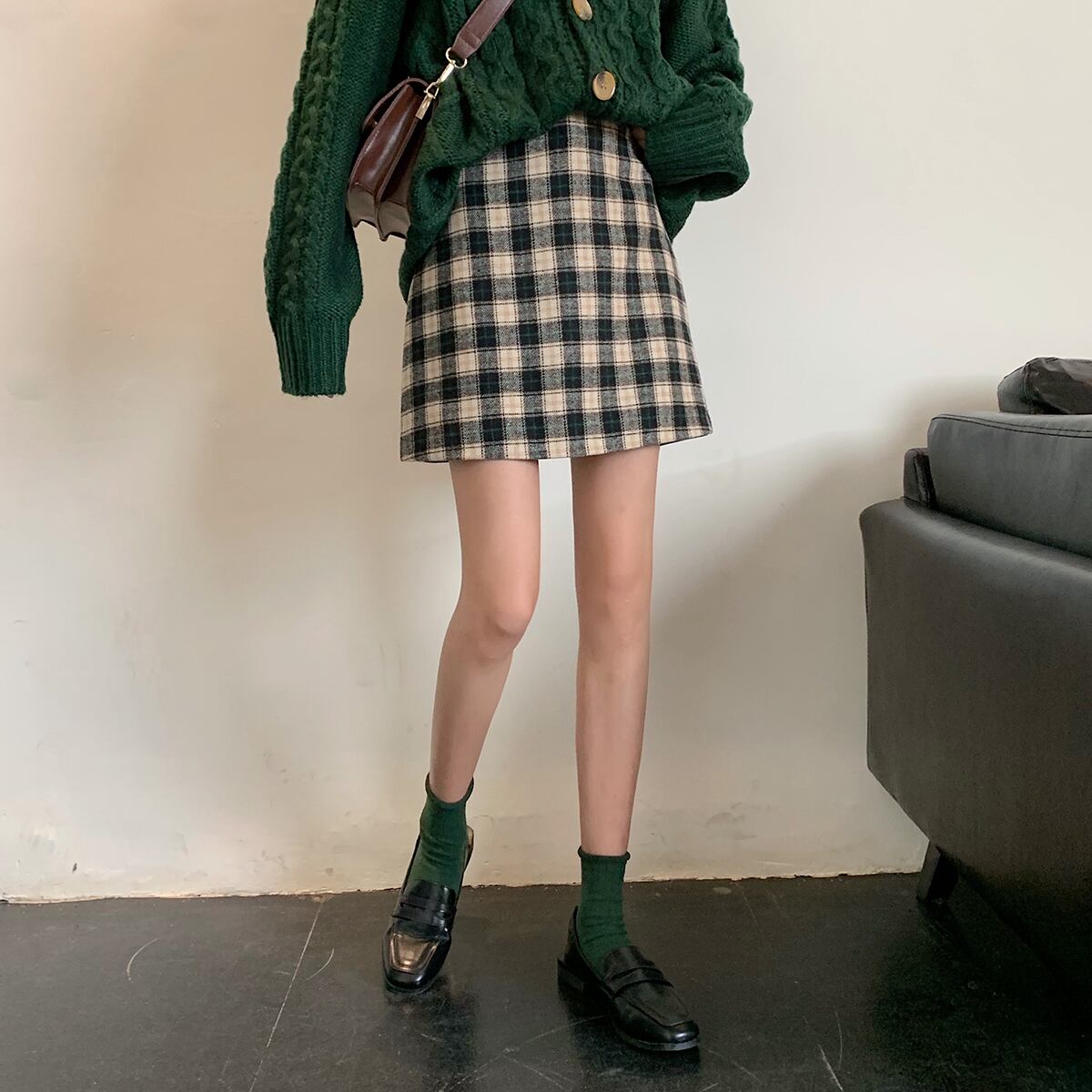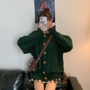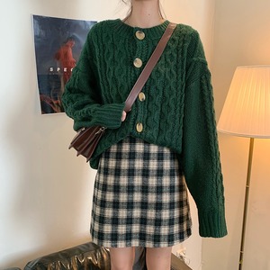 緑のセーター2020年初秋の新しいルーズラウンドネックシングルブレストカーディガンジャケット+チェック柄のスカート クレセントシティ76025096140