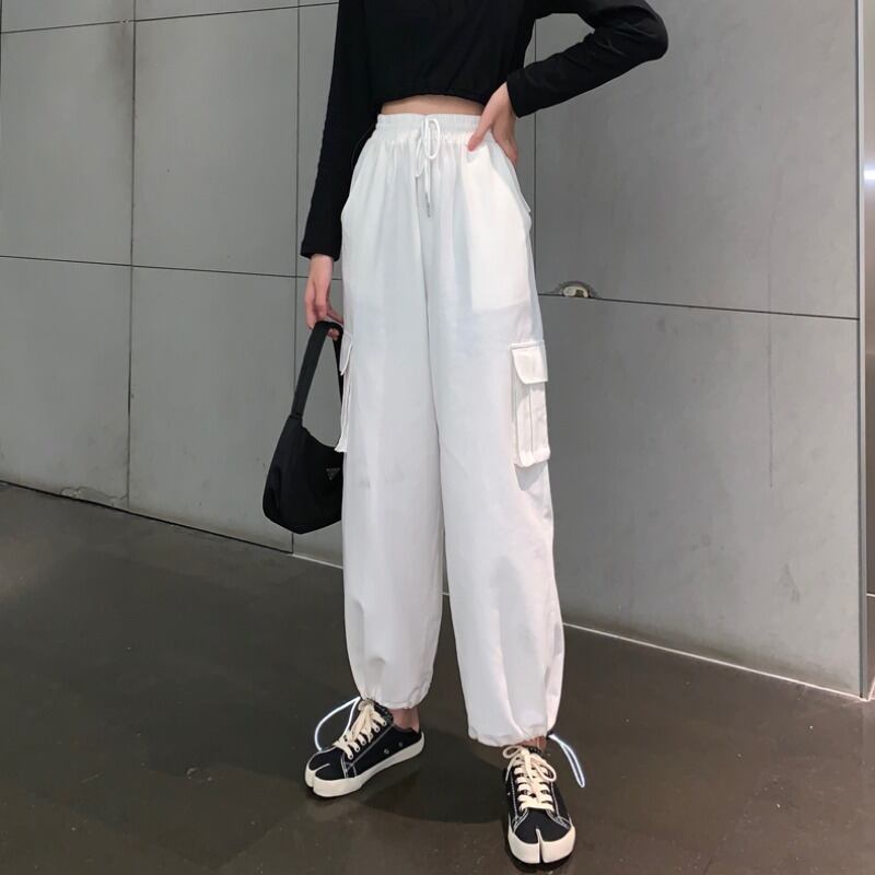BFオーバーオール女性バージョン緩い2020春新しいレース弾性ハイウエストコルセットカジュアルパンツスポーツパンツ女性 クレセントシティ20742604066