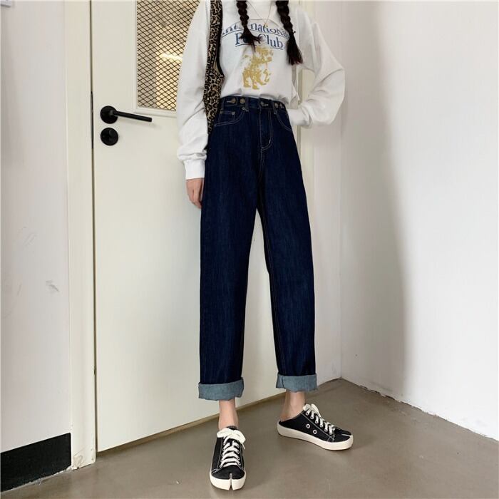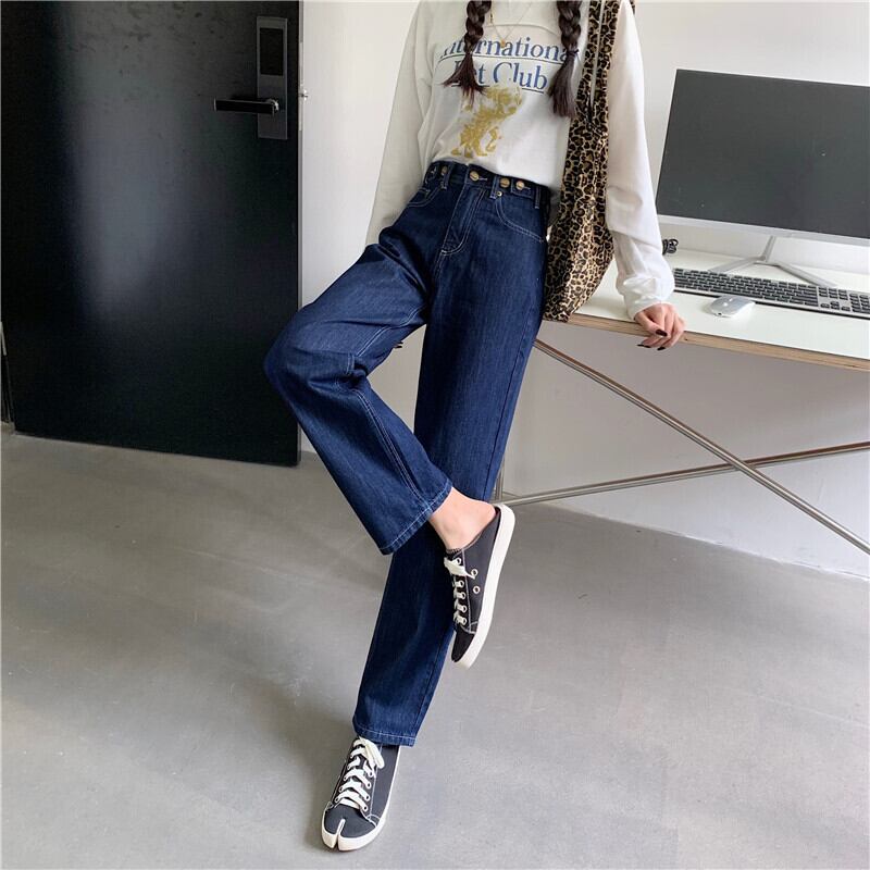 レトロブルーハイウエストジーンズ女性の2020年初秋の新デザインセンスバージョンルーズで薄いストレートパンツ クレセントシティ55754546205