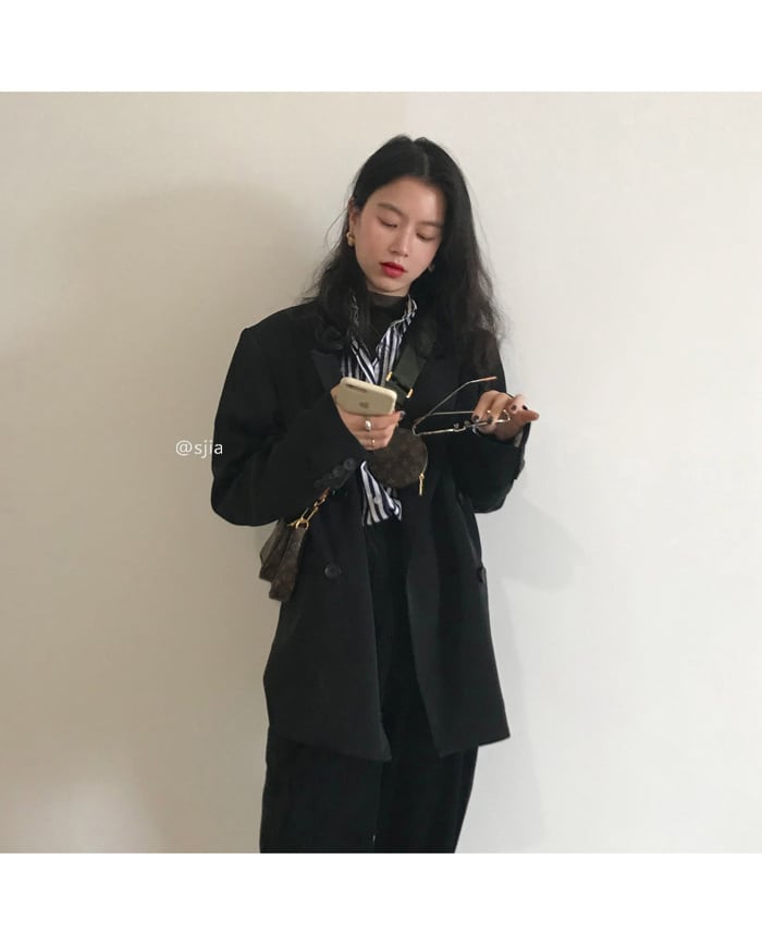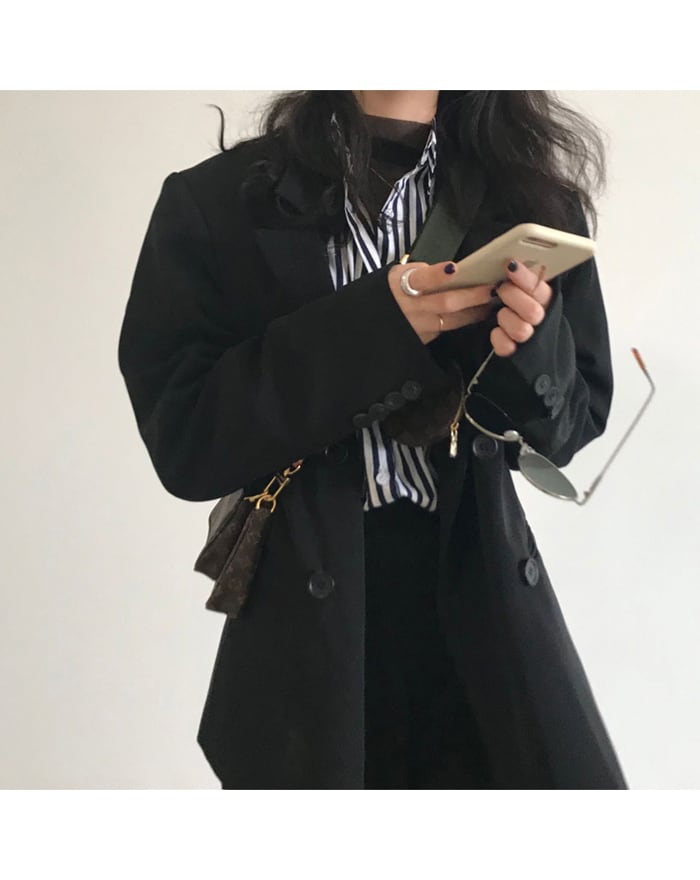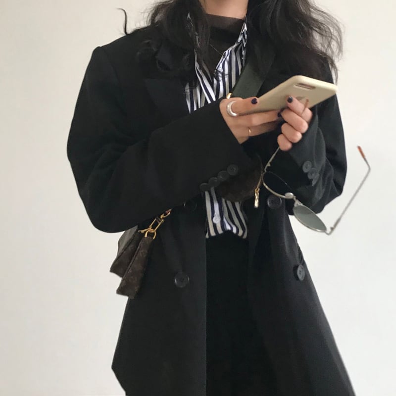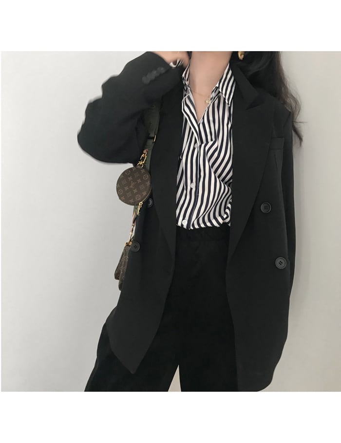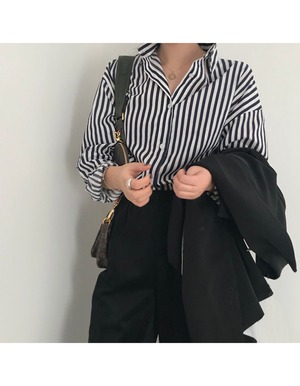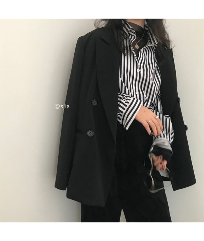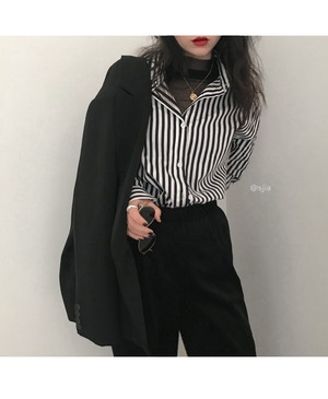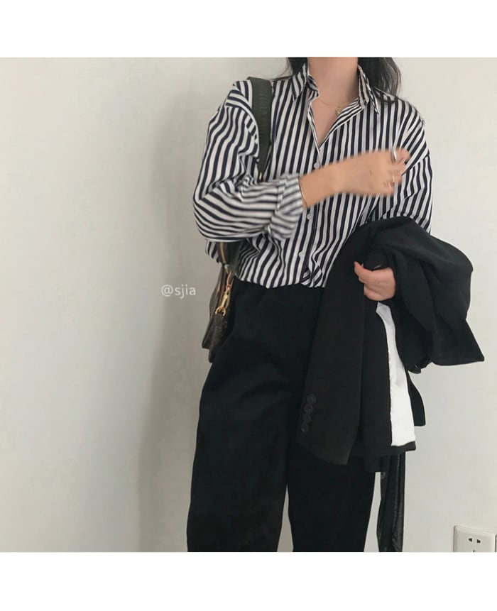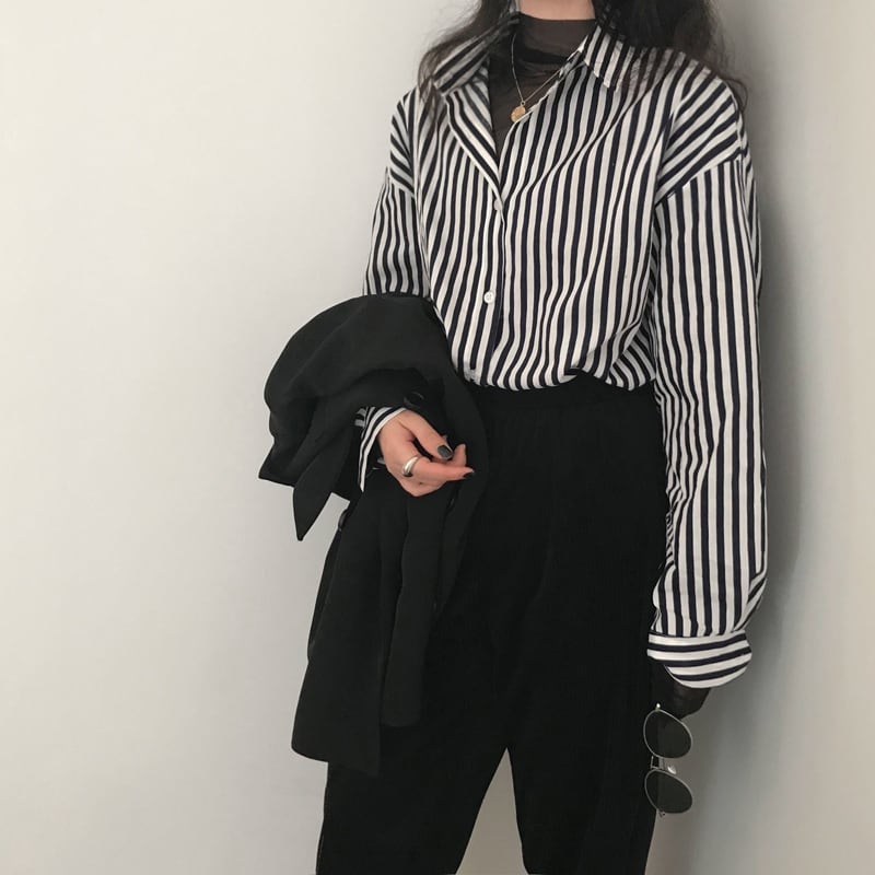 可能な黒と白の縦ストライプシャツデザインセンスニッチな女性の2020年初秋のシックなルーズシャツトレンドの新しいバージョン クレセントシティ99234786395