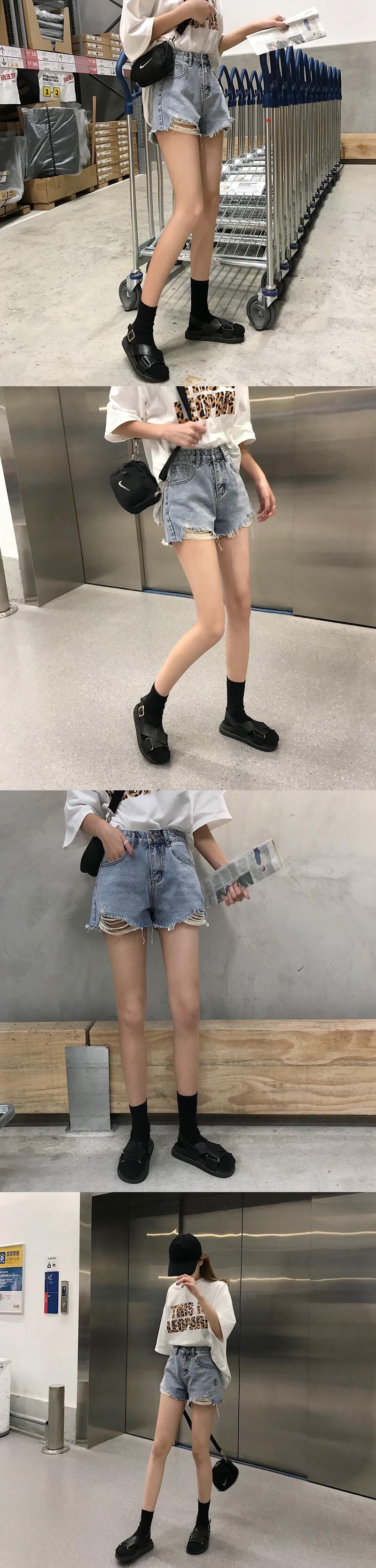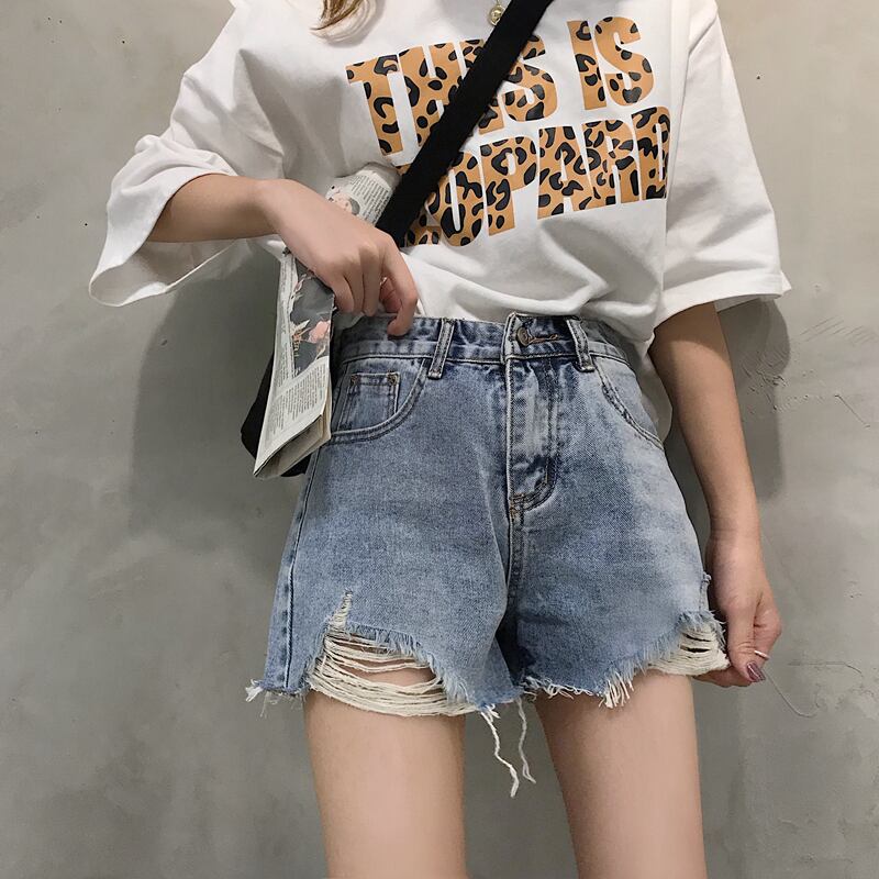 ウエストデニムショートパンツ女性のストレート春と夏の新しいバージョンの生のエッジの洗浄穴緩いワイドレッグパンツパンツ クレセントシティ74780979825