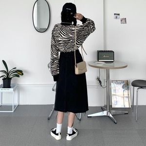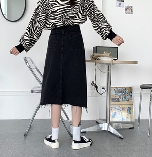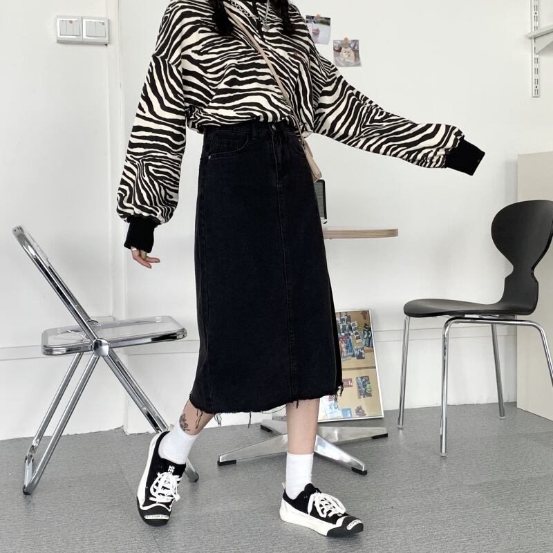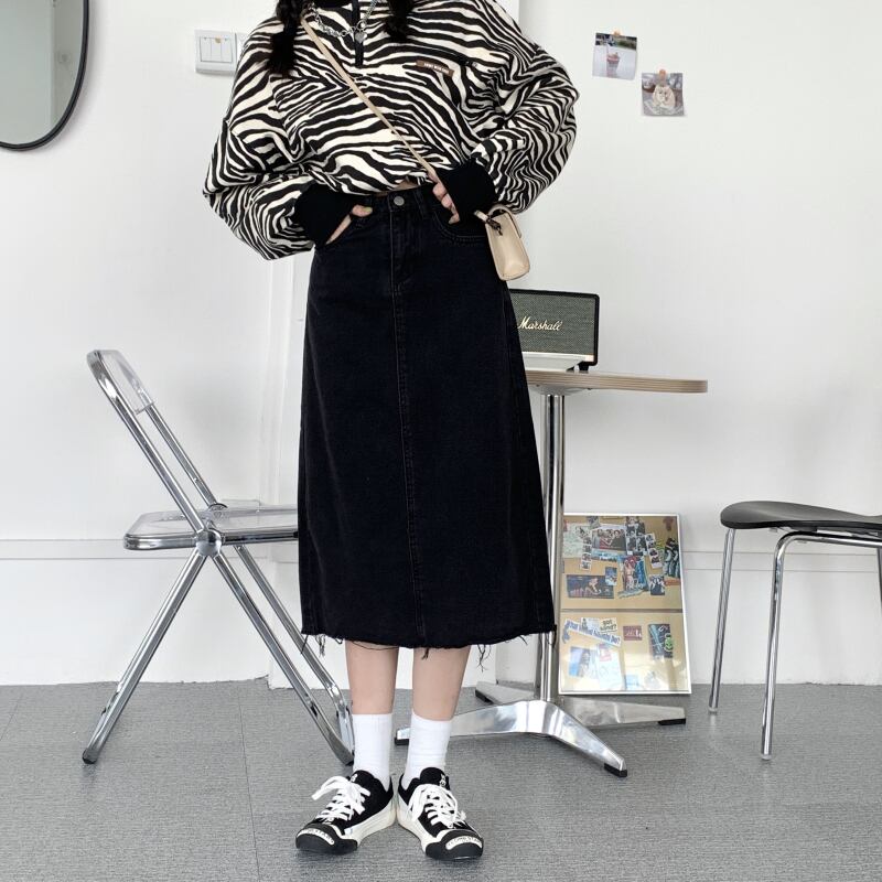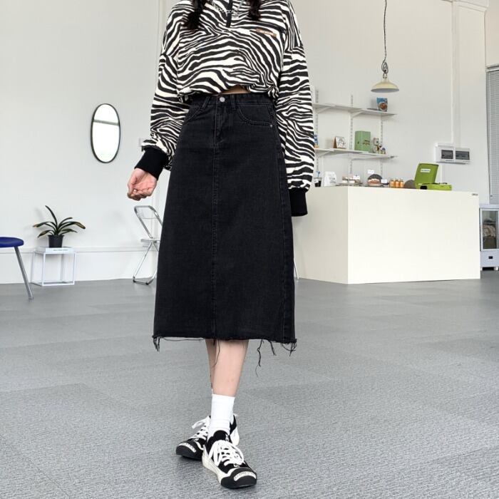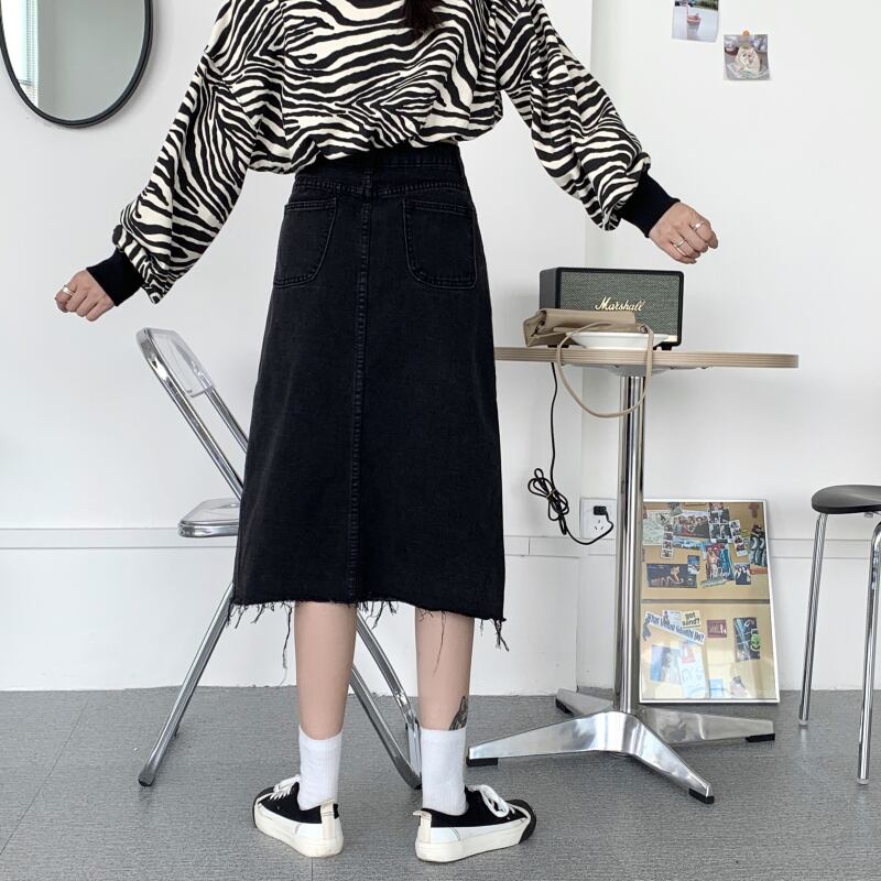黒の生デニムスカート女性の2020年初秋のハイウエストスリムレトロなミドル丈aラインスカートの新しいバージョン クレセントシティ91052867037