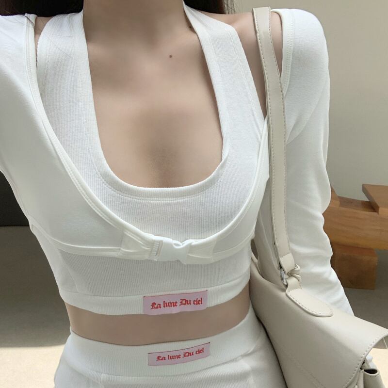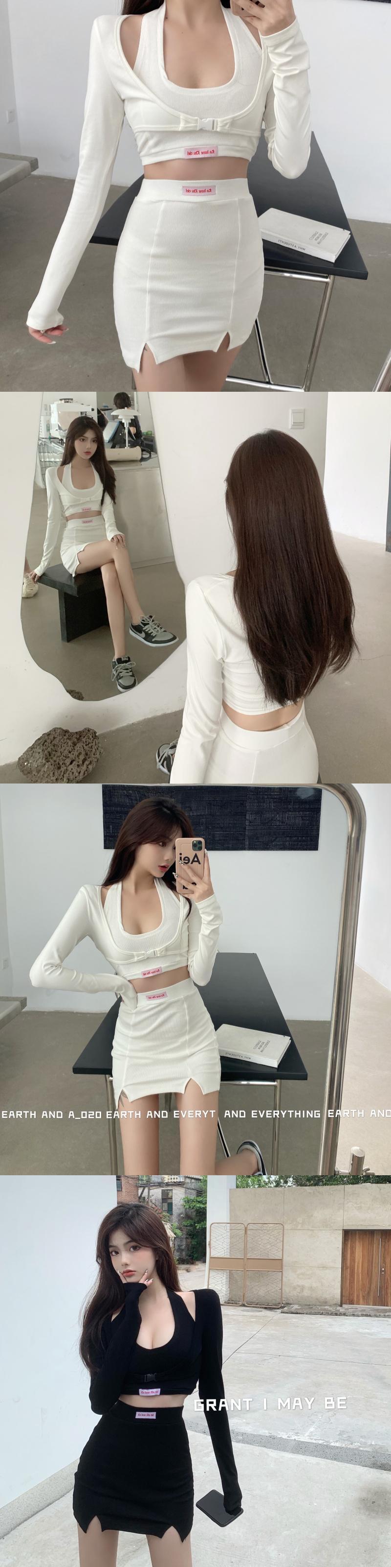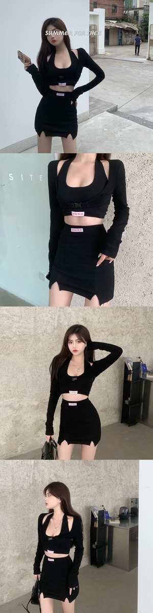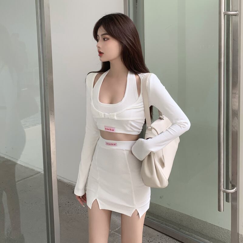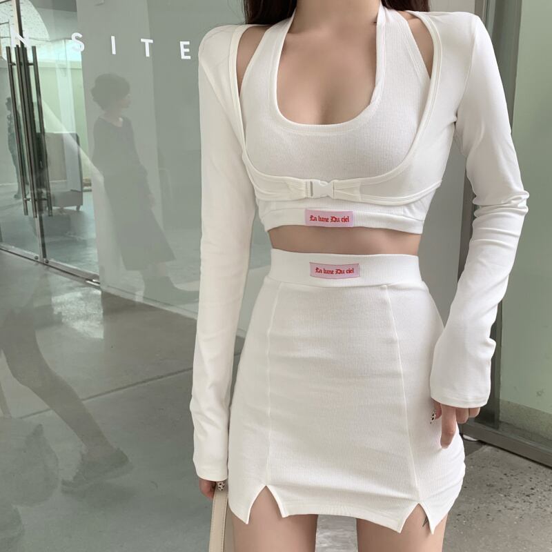 2020年秋の新しいファッションスーツホルターネックベスト長袖カーディガンオープンKバッグヒップショートスカートスリーピーススーツ クレセントシティ71071111804