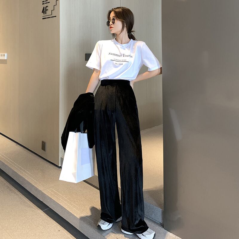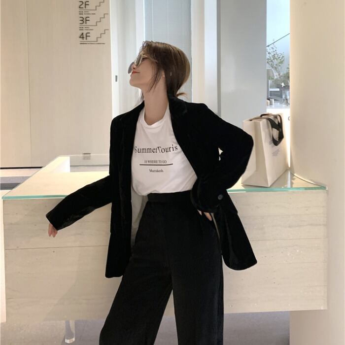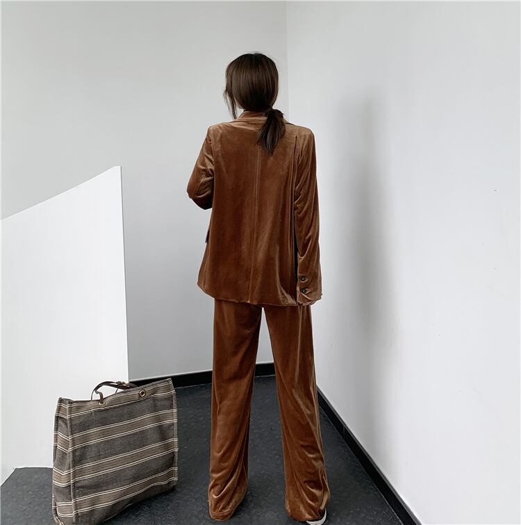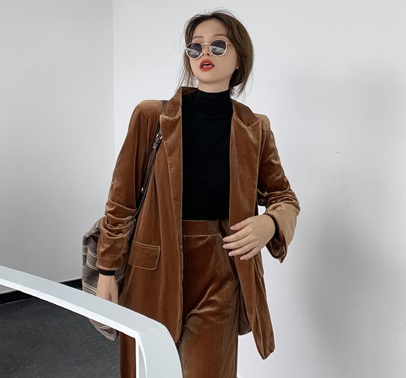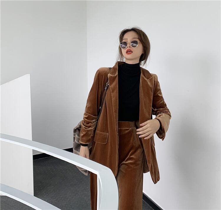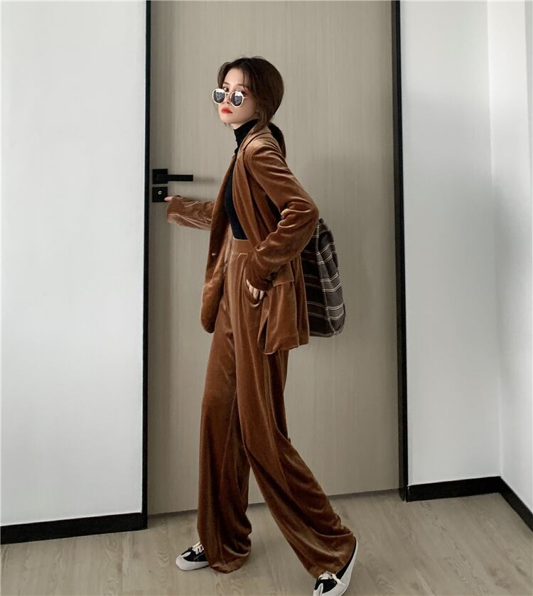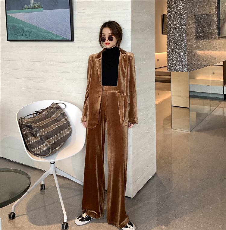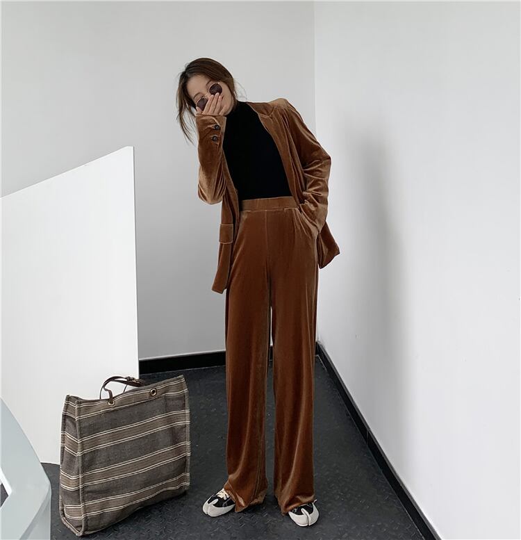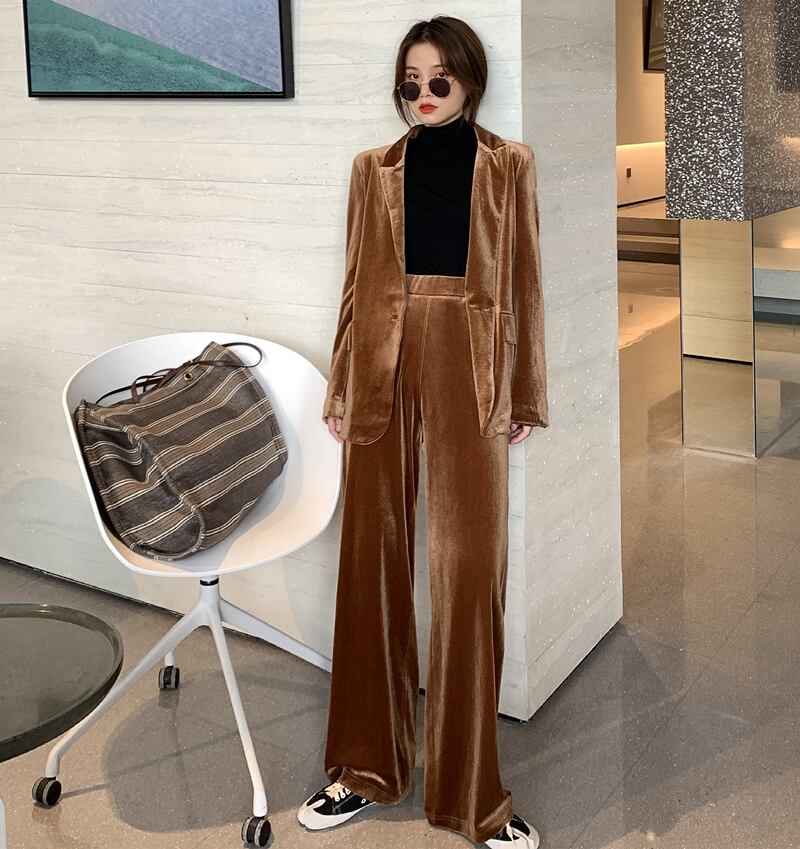 スーツの女性の秋/冬2020新しいベルベットスーツジャケット緩いカジュアルストレートモップパンツツーピーススーツ クレセントシティ91076582560