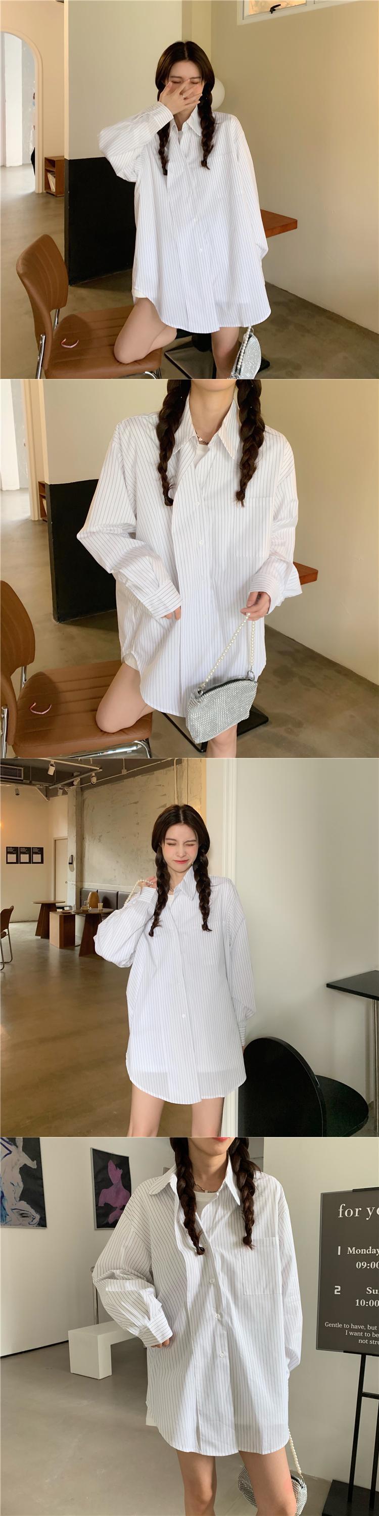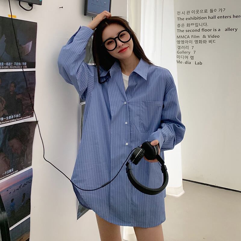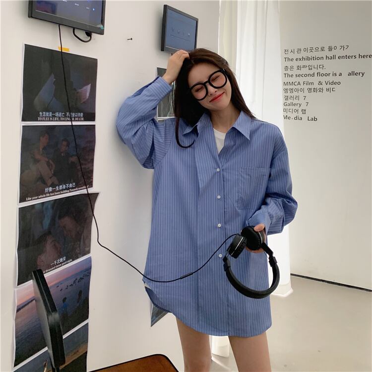 ストライプシャツ女性デザインセンスニッチ初秋2020年新しいファッション2層襟シックな緩いシャツトレンド クレセントシティ29566693356