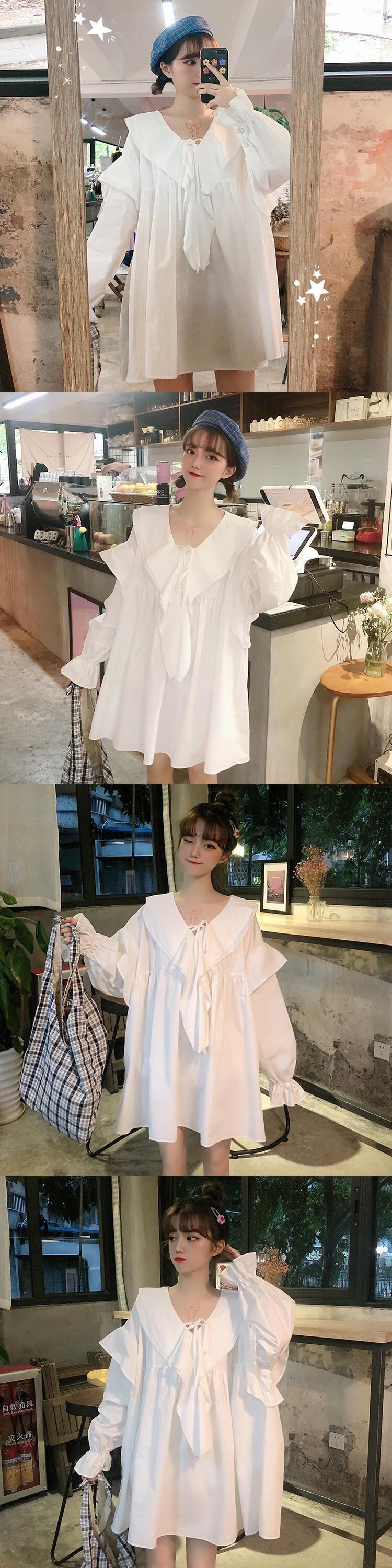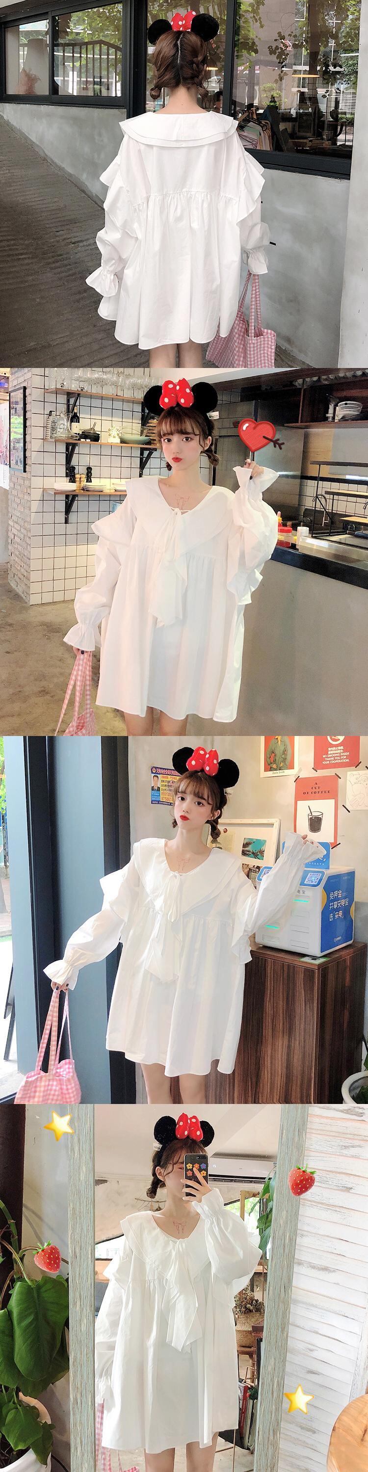 人形の襟の白いシャツの女性のデザイン感覚ニッチ春2020新バージョン緩いミドル丈長袖シャツトレンド クレセントシティ7950062346
