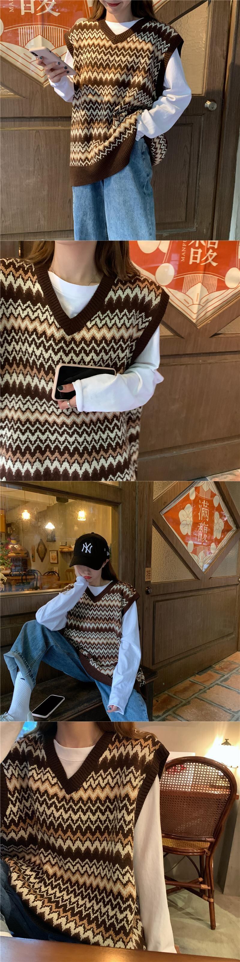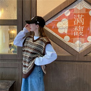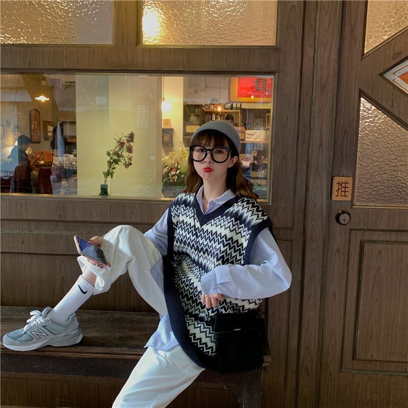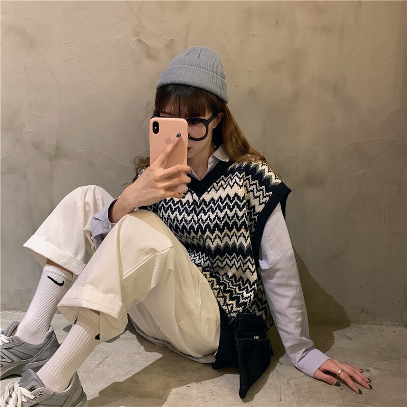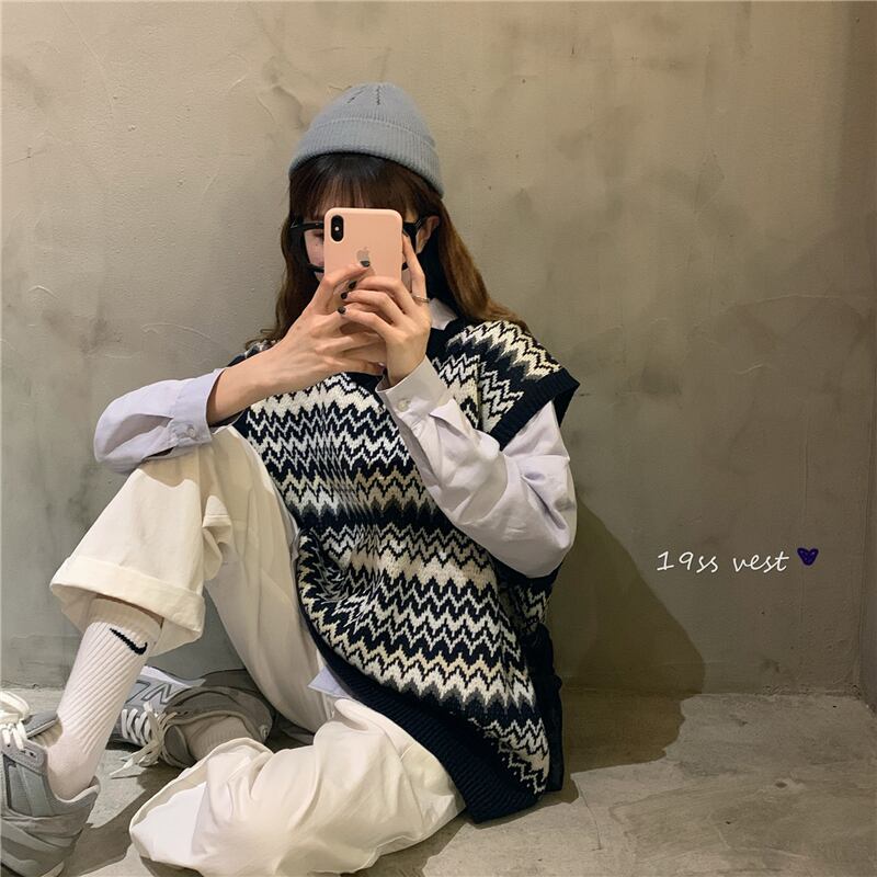 Vネックニットベスト女性2020新しい秋バージョン緩い野生の学生アウターウェアノースリーブベストセーター女性 クレセントシティ55234231595