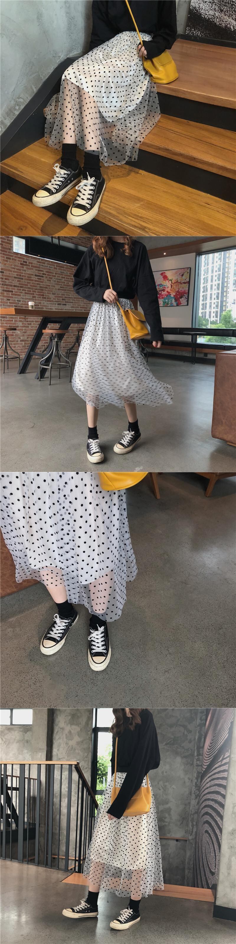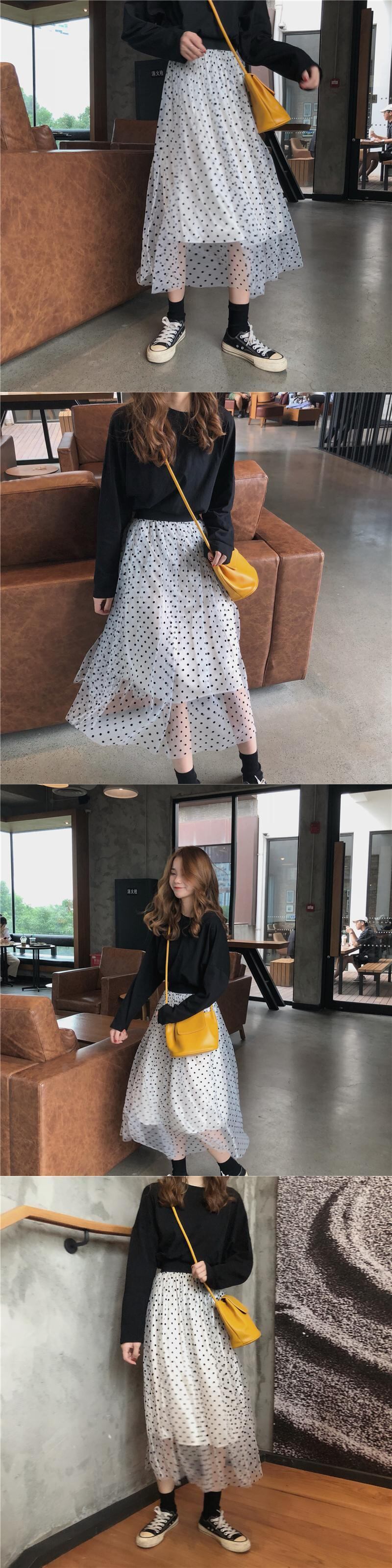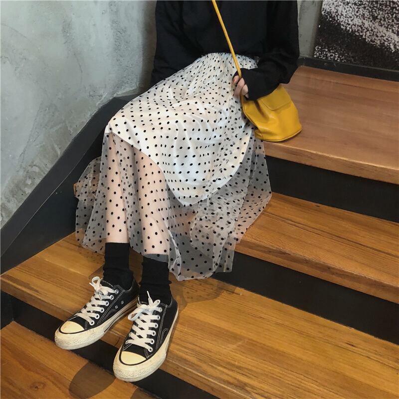 バージョンの水玉メッシュスカートレディース2020年初秋の新しいハイウエストのルーズなデザインミドル丈Aラインスカート クレセントシティ21048315662