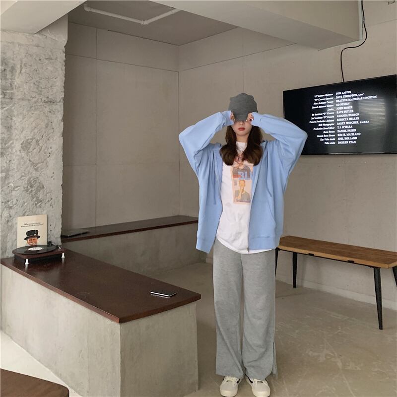 アクアブルーフード付きセータージャケットレディース初秋2020新しい怠惰なミドル丈デザインルーズトップ クレセントシティ4562144937