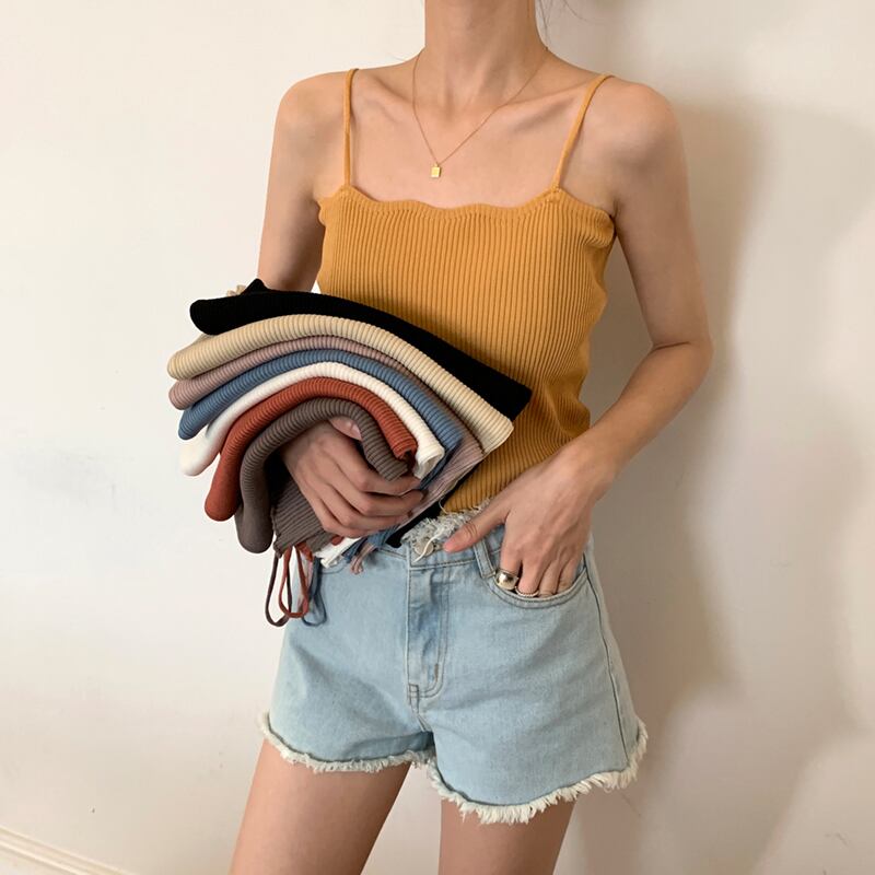 クレセントシティ2020夏新作のシックなスリムスリムソリッドカラーオールマッチニットキャミソールレディースアウター クレセントシティ50567249559