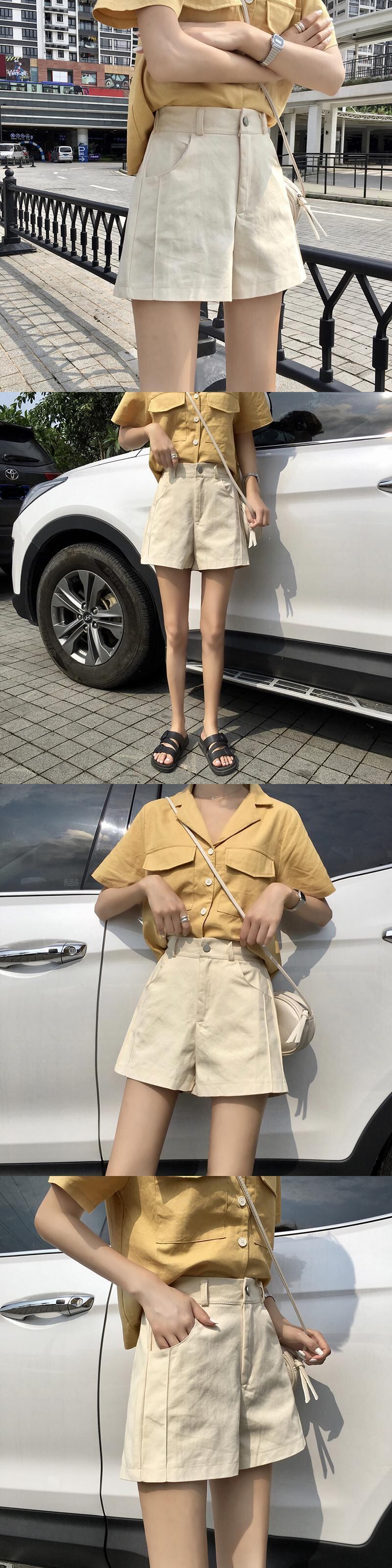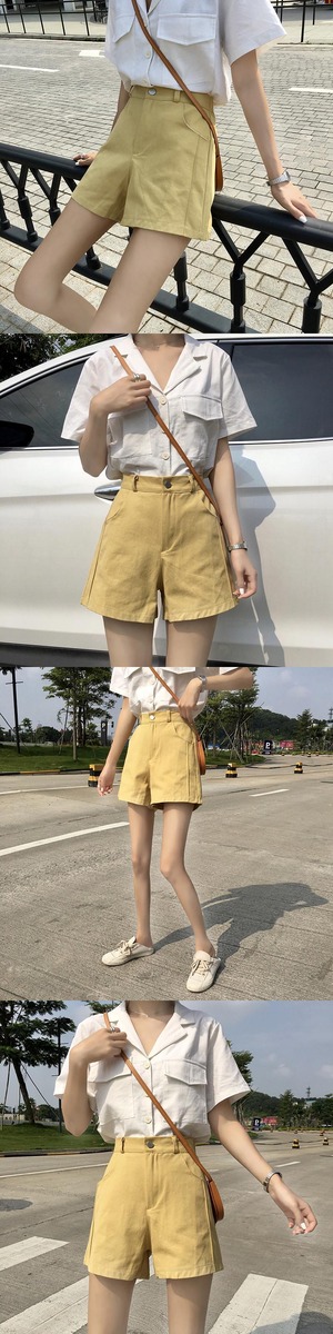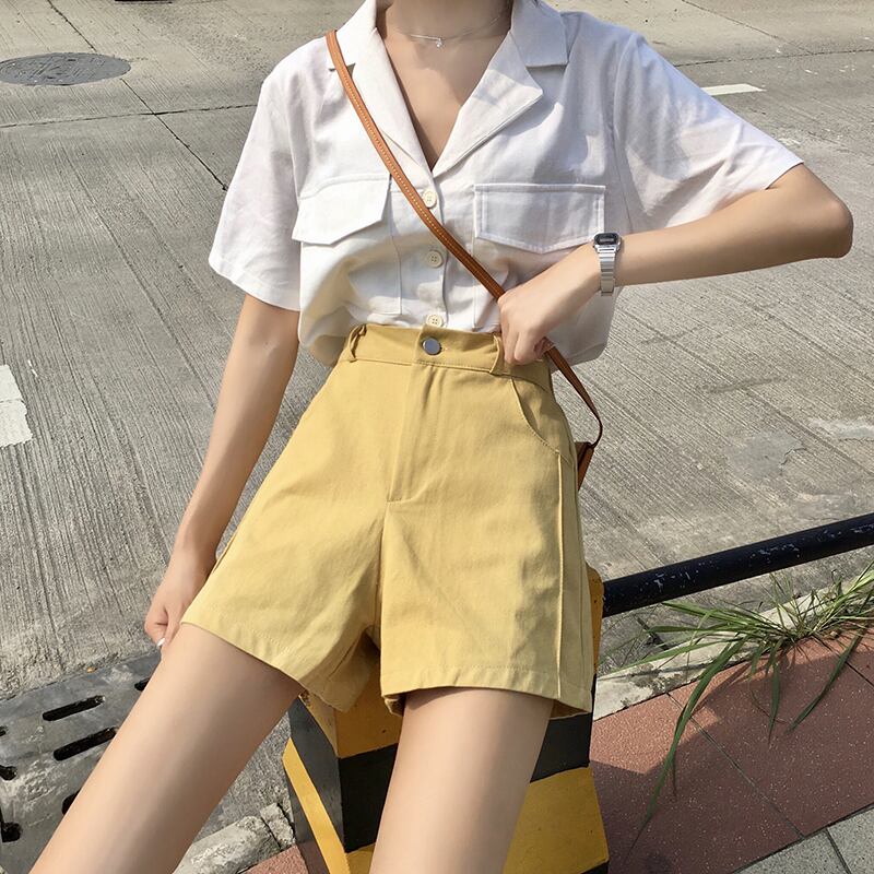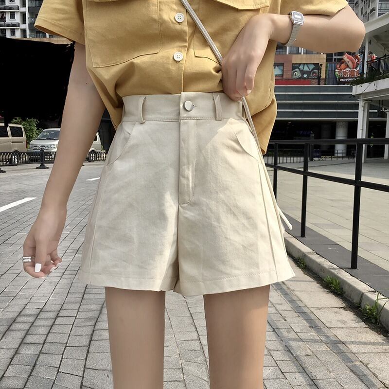 ウエストショートパンツ女性の緩いaラインワイドレッグパンツ夏2020新しいバージョンの野生の薄いと背の高い学生のパンツ クレセントシティ89585648448