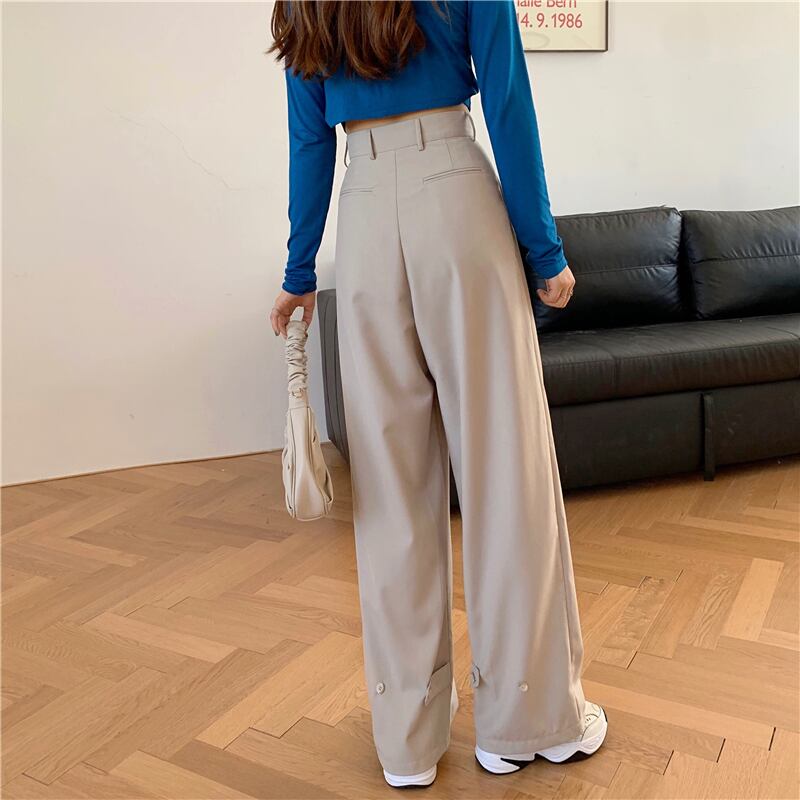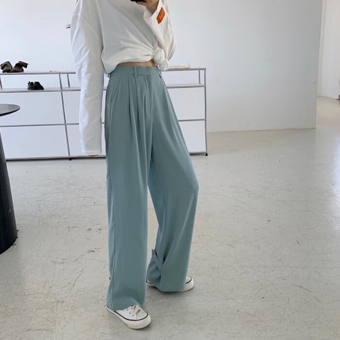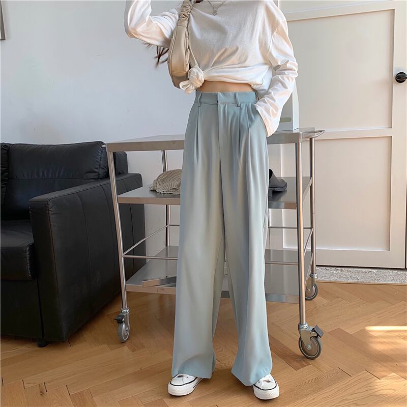 スモールワイドレッグパンツ女性の初秋2020新しいスタイルのルーズカジュアルパンツハイウエストドレープストレートモップパンツ クレセントシティ54329358584