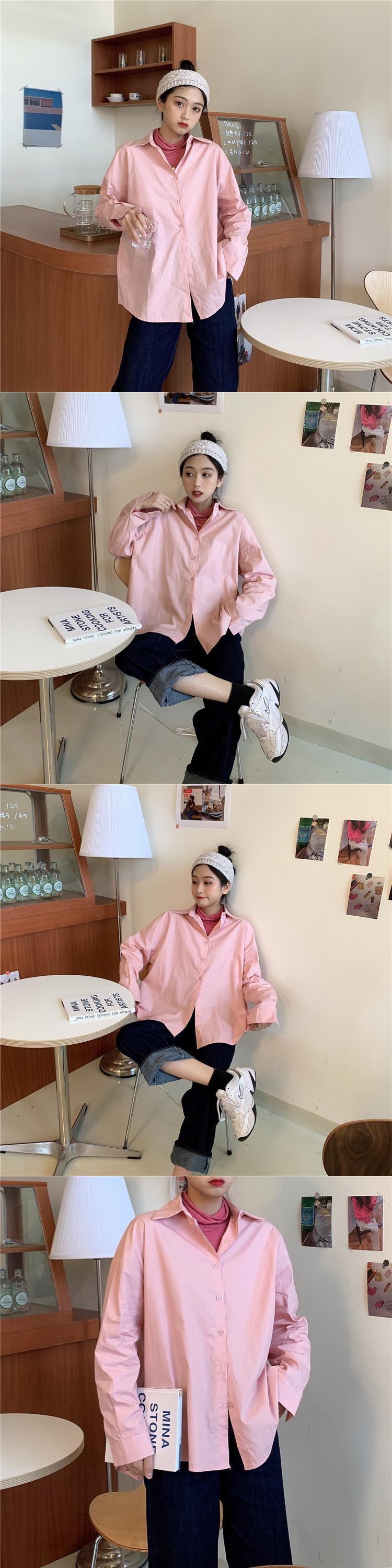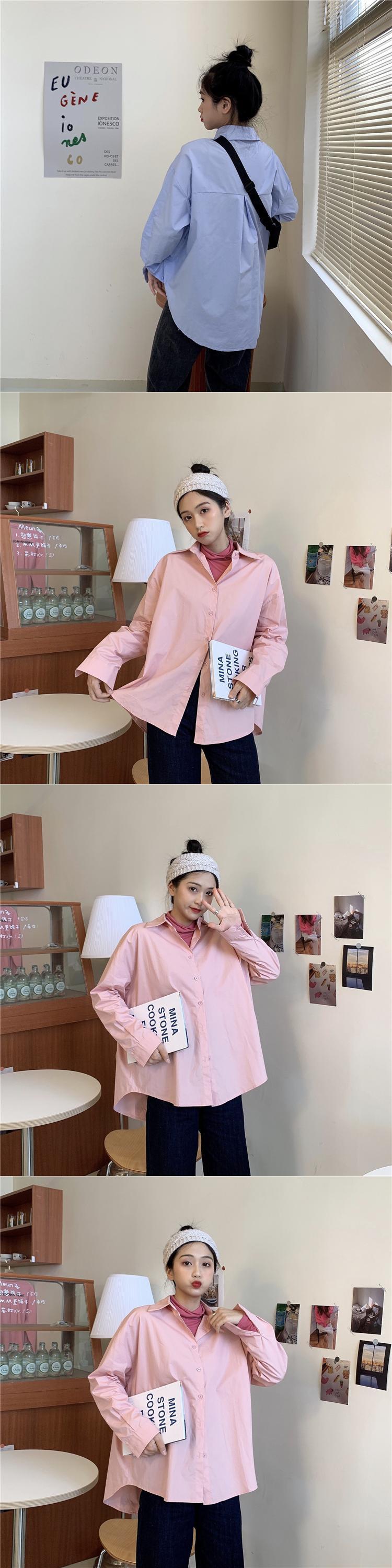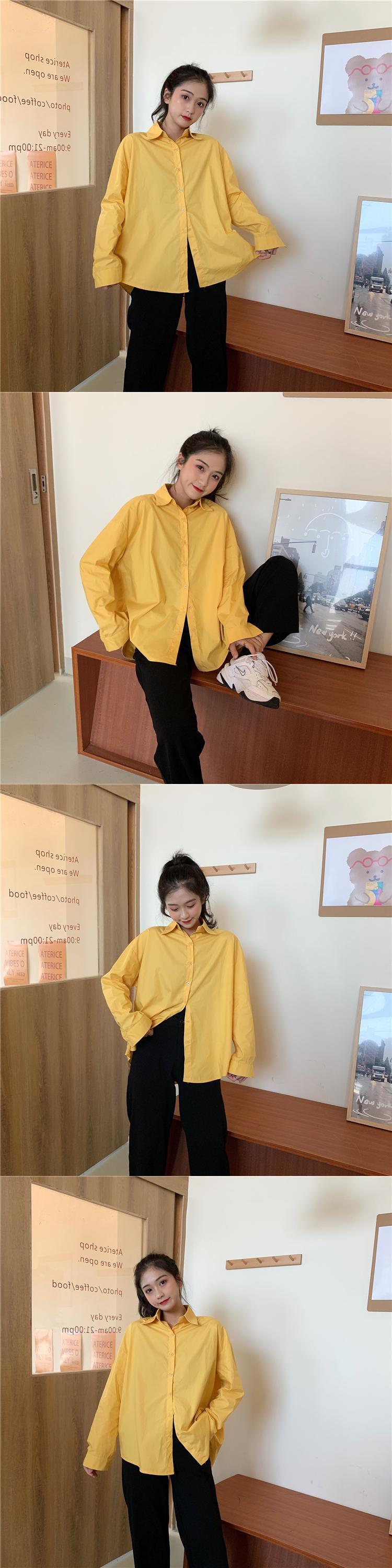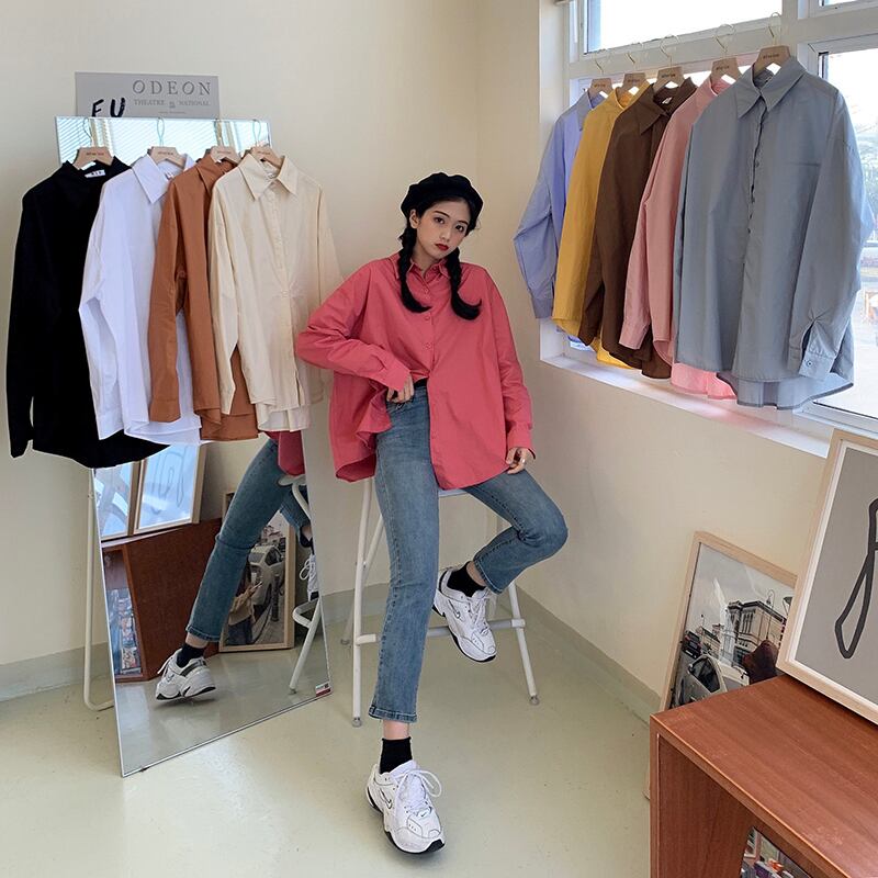 長袖シャツ女性2020春の新バージョン緩いシンプルなピュアカラーポロカラーシャツカーディガンジャケット女性のトレンド クレセントシティ21352133846