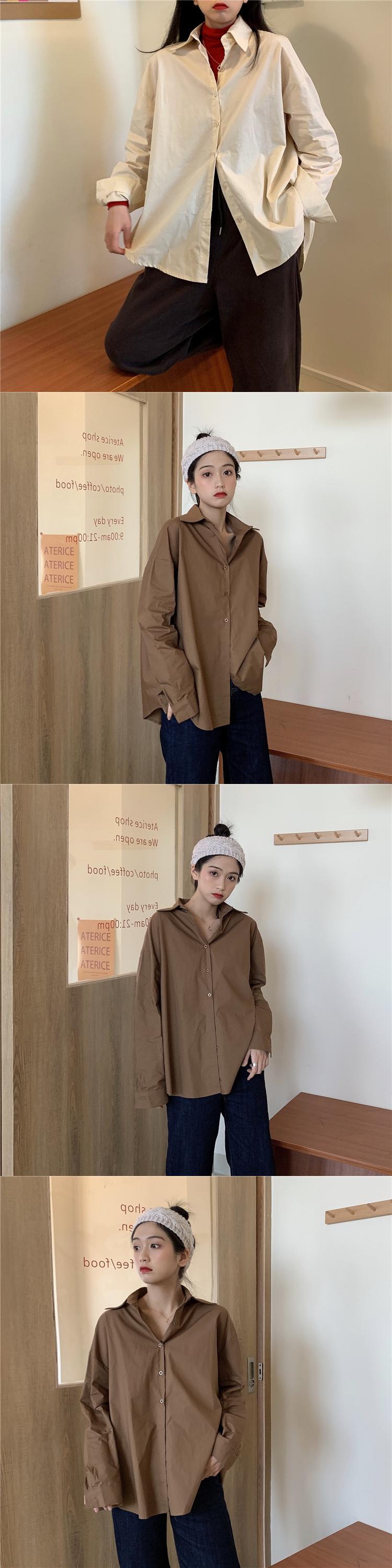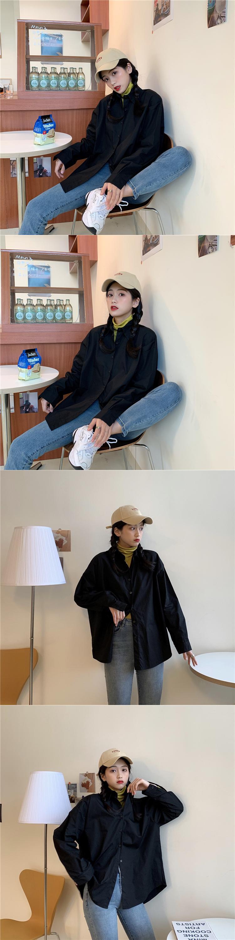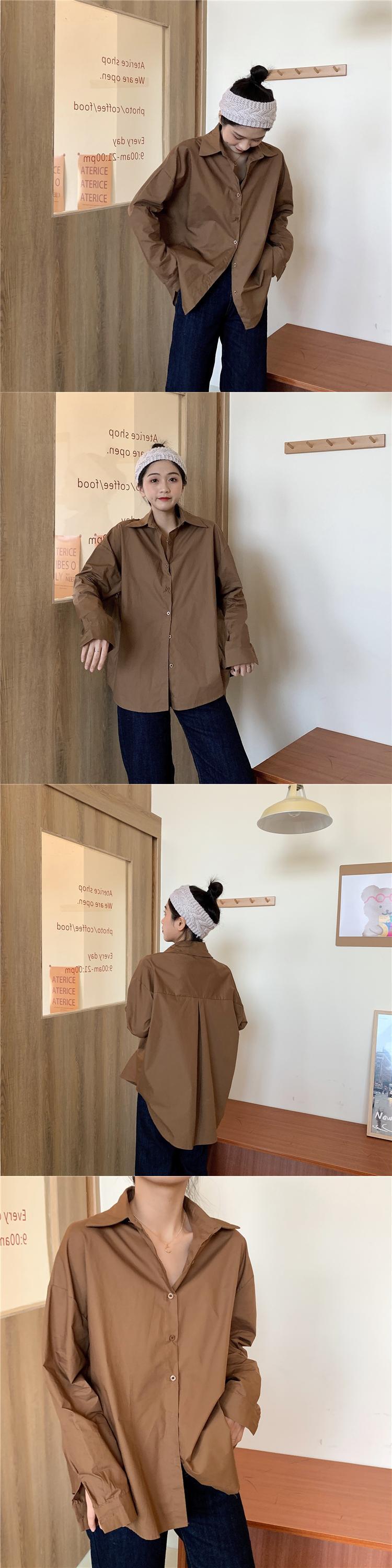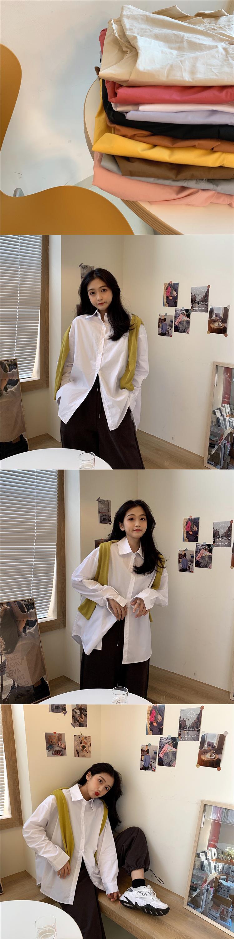 長袖シャツ女性2020春の新バージョン緩いシンプルなピュアカラーポロカラーシャツカーディガンジャケット女性のトレンド クレセントシティ21352133846