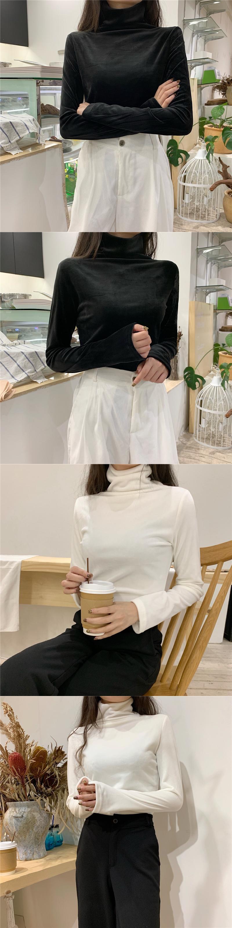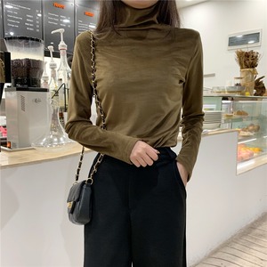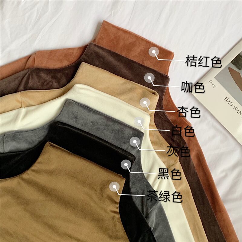 ハーフハイトカラーの黒の長袖Tシャツの女性の秋と冬のタイトフィットの薄い金のベルベットのトップのパイルカラーのボトミングシャツの女性 クレセントシティ67679853098