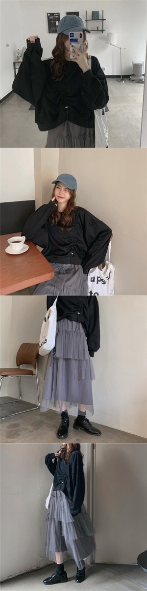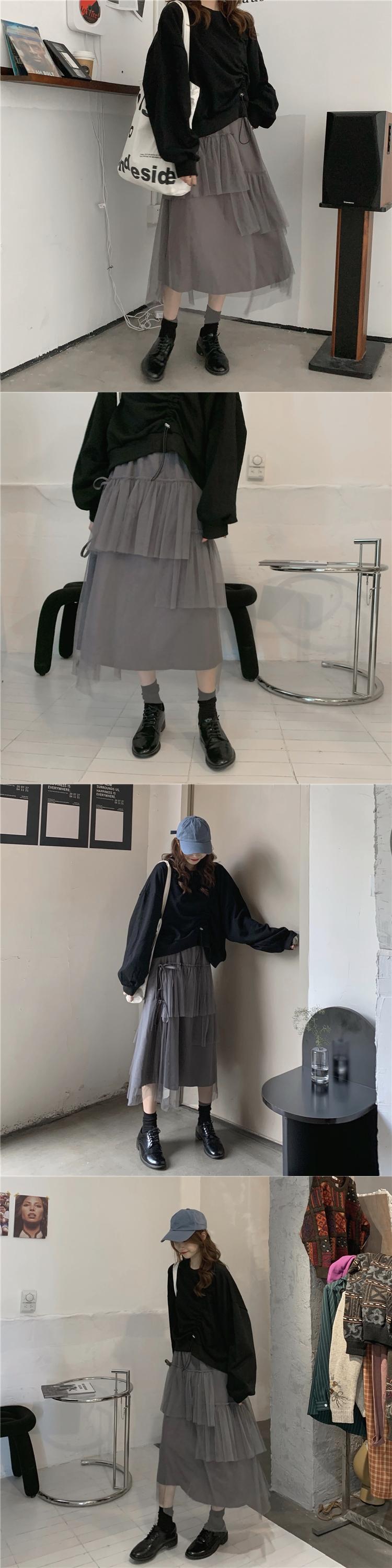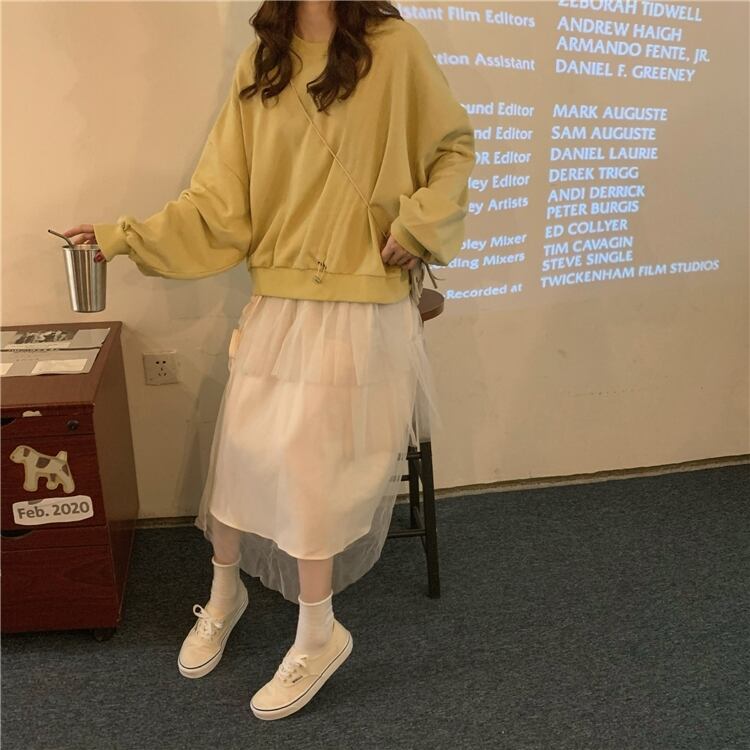 スーツレディース2020年初秋新作ルーズデザインドローストリングセーター+ハイウエストメッシュスカート クレセントシティ89961749664