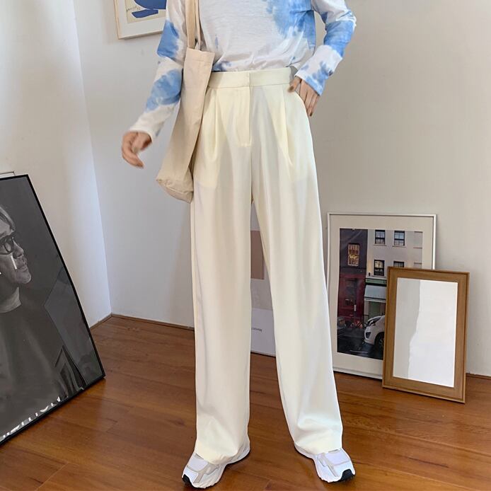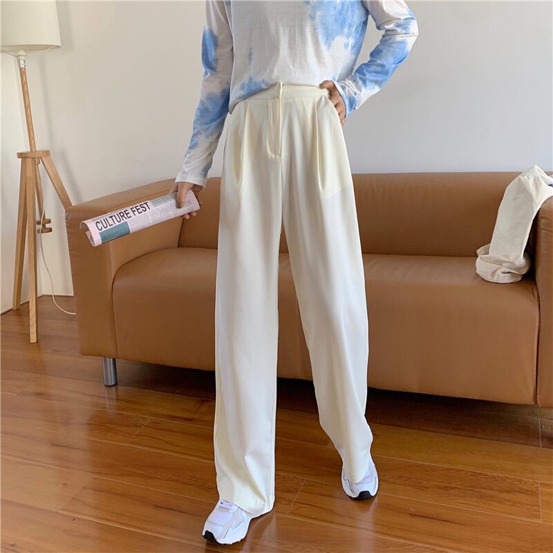 スーツのパンツの女性の2020年初秋の新しい緩い、薄いバージョンの小さな背の高いウエストドレープワイドレッグストレートカジュアルパンツ クレセントシティ91528320257