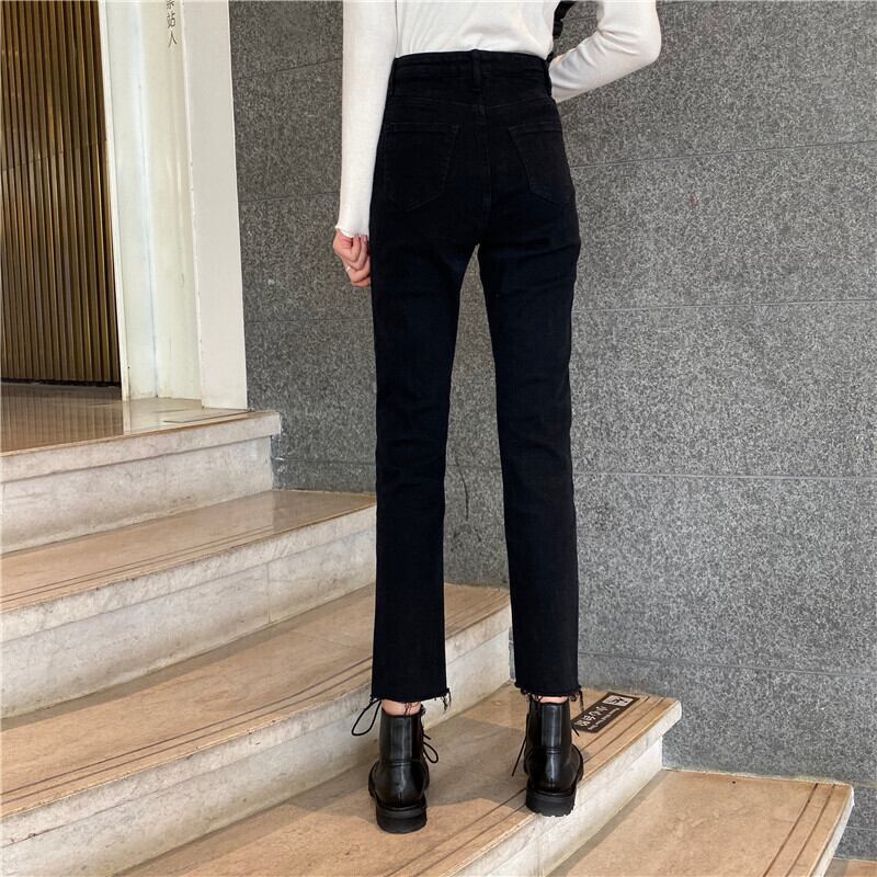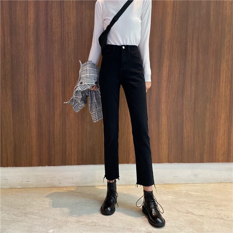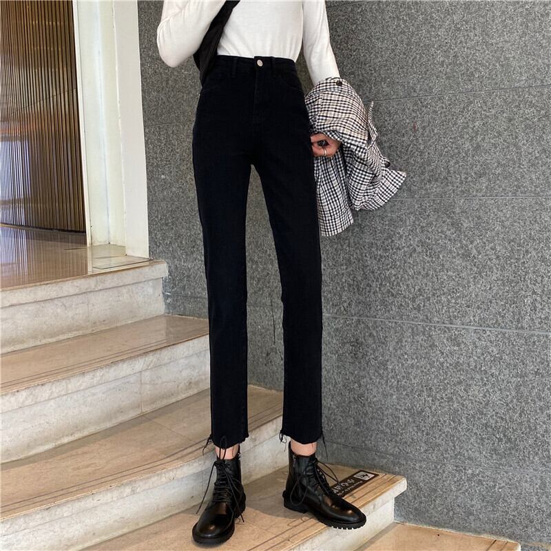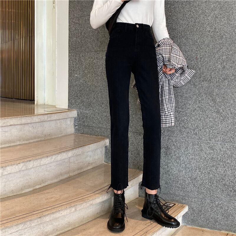 ウエストブラックジーンズレディースストレートルーズインタイド2020春新作オールマッチ薄手9点パンツ クレセントシティ64352218773
