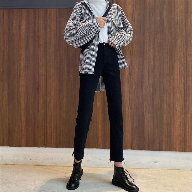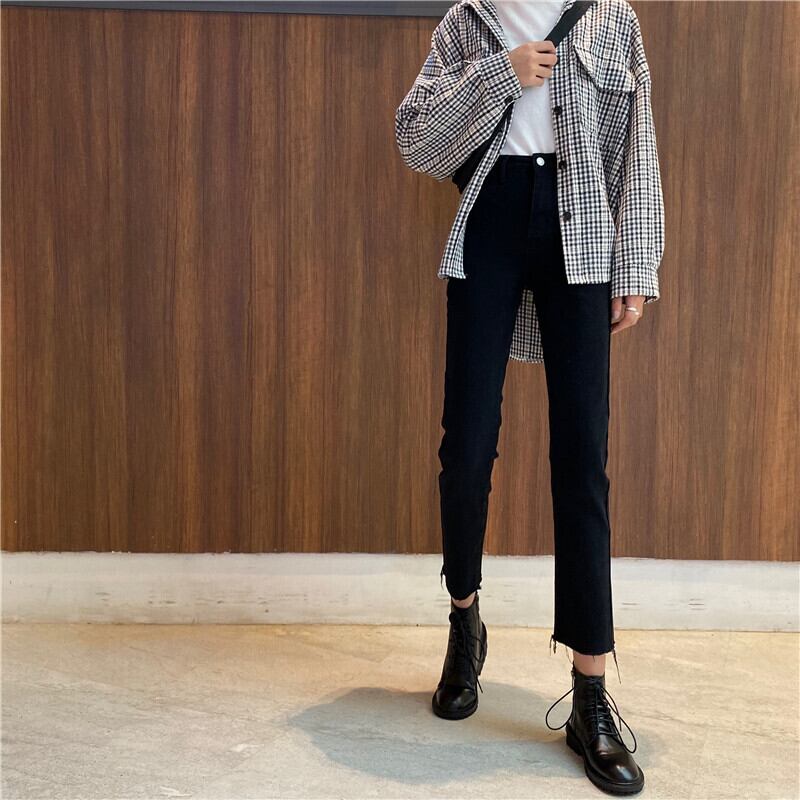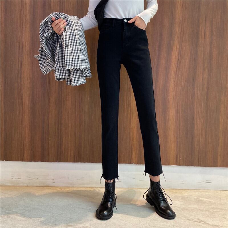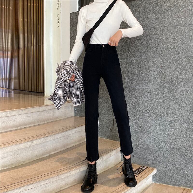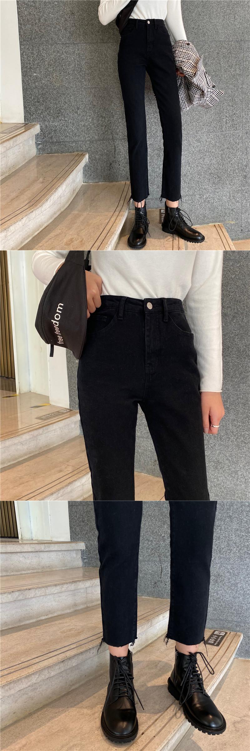 ウエストブラックジーンズレディースストレートルーズインタイド2020春新作オールマッチ薄手9点パンツ クレセントシティ64352218773
