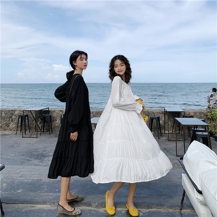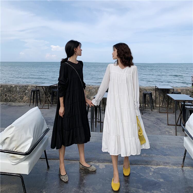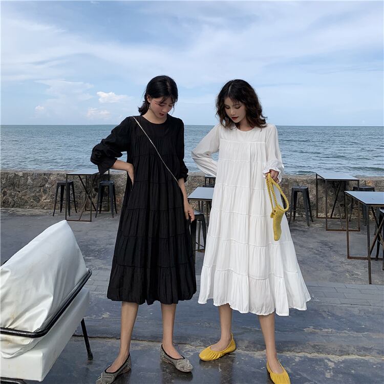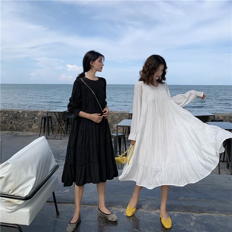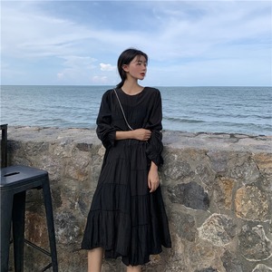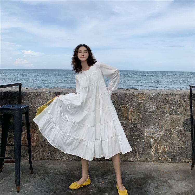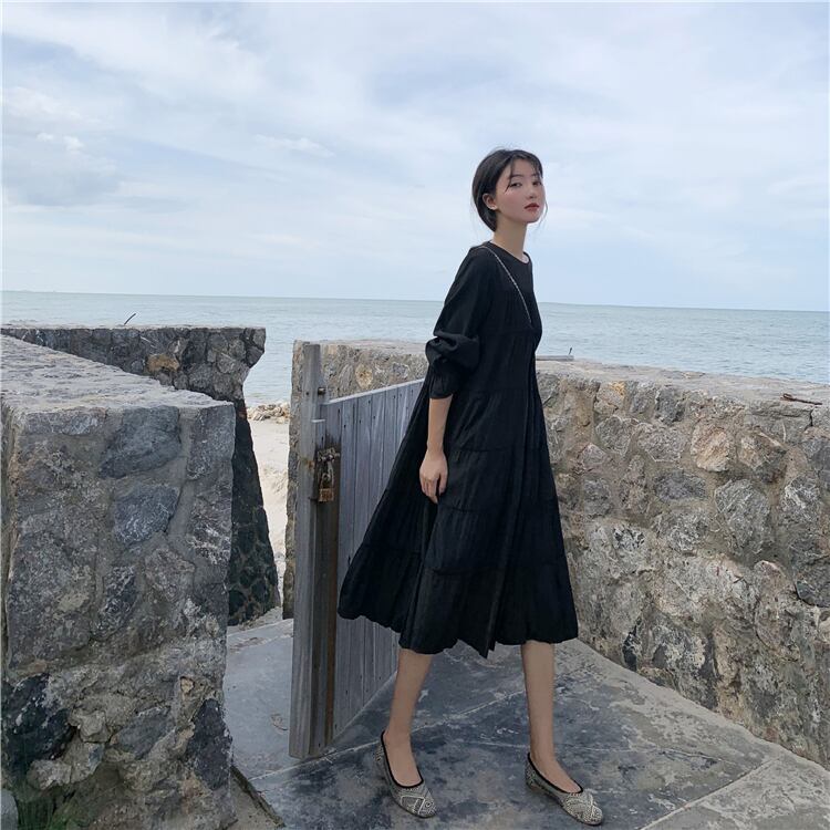 スカートの女性の春と秋2020新しいバージョンの膝の上の大きなラウンドネックミドル丈のAラインドレスの妖精スカート クレセントシティ11518917727