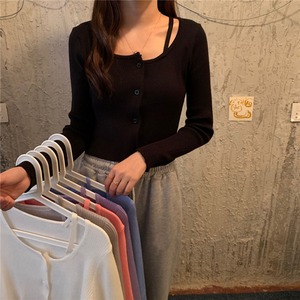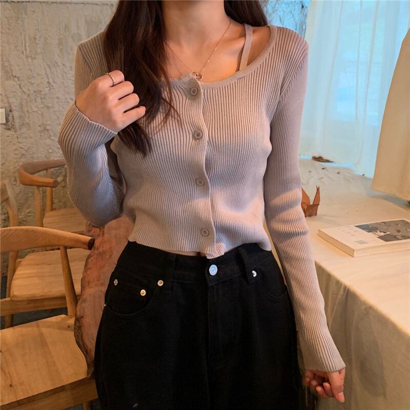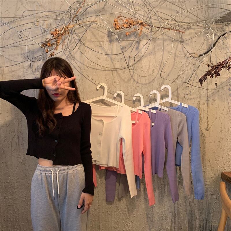2020年の初秋、不規則に露出した鎖骨の長袖ニットカーディガン女子学生ショートトップ クレセントシティ75590801894