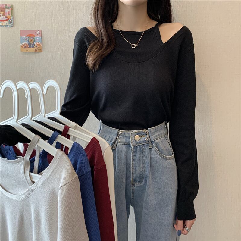 2020年初秋の新しいスタイルの怠惰なスタイルのデザイン感覚スリングプルオーバーセーター女性緩いアウタートップ長袖 クレセントシティ86686107828