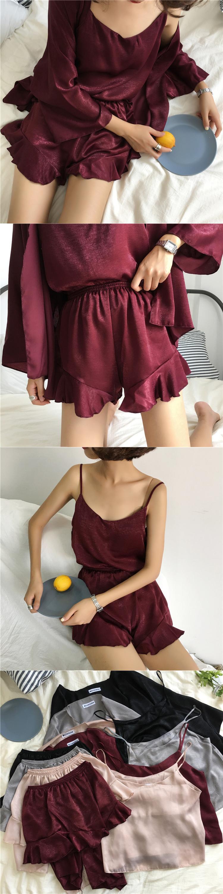 春の新しいパジャマホームサービススーツ女性版緩い小さなサスペンダー+ショートパンツ+カーディガンジャケットスリーピーススーツ クレセントシティ49332705840