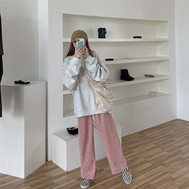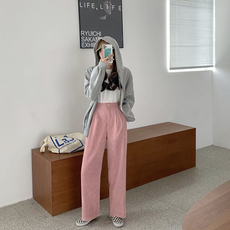 パンツ女性の2020年秋の新バージョンのルーズカジュアルパンツは、薄くて用途の広いハイウエストドレープストレートモップパンツ クレセントシティ2221680032