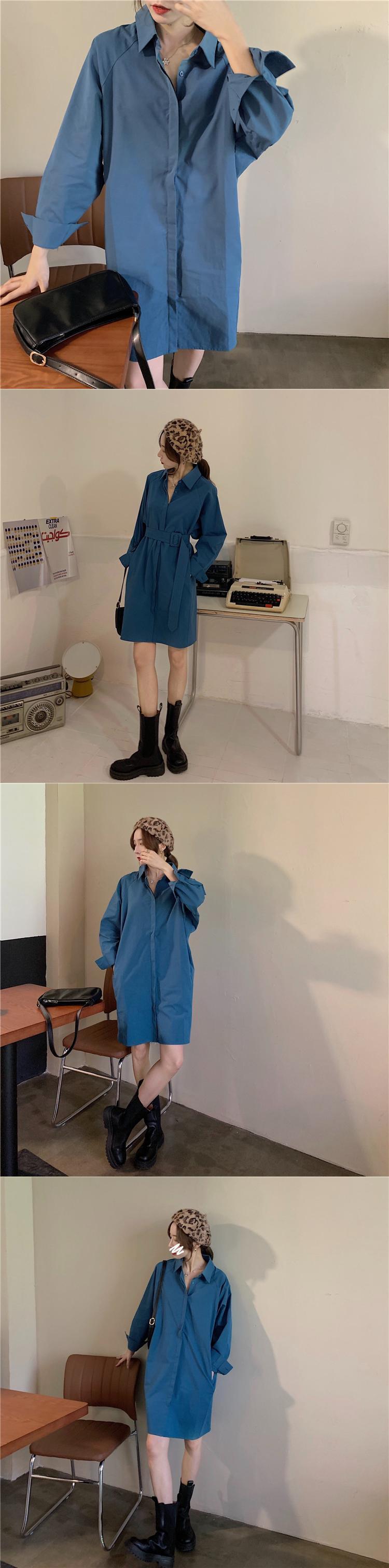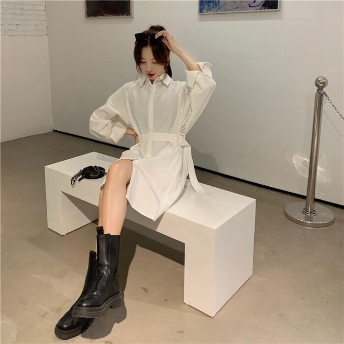 純粋な色の長袖シャツスカートレディース2020年初秋新しいデザイン感覚緩い腰ベルトドレープドレス クレセントシティ41799033000