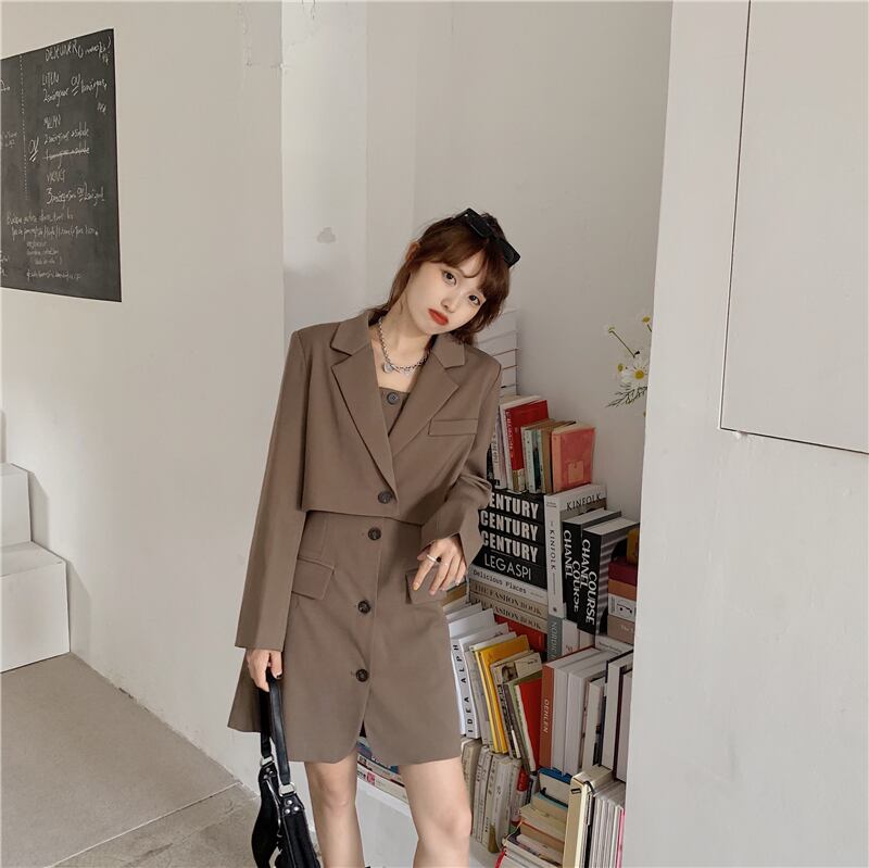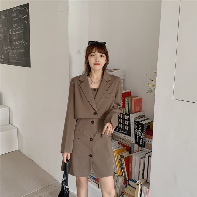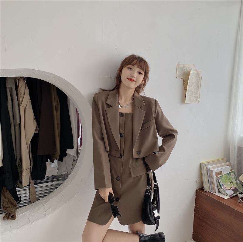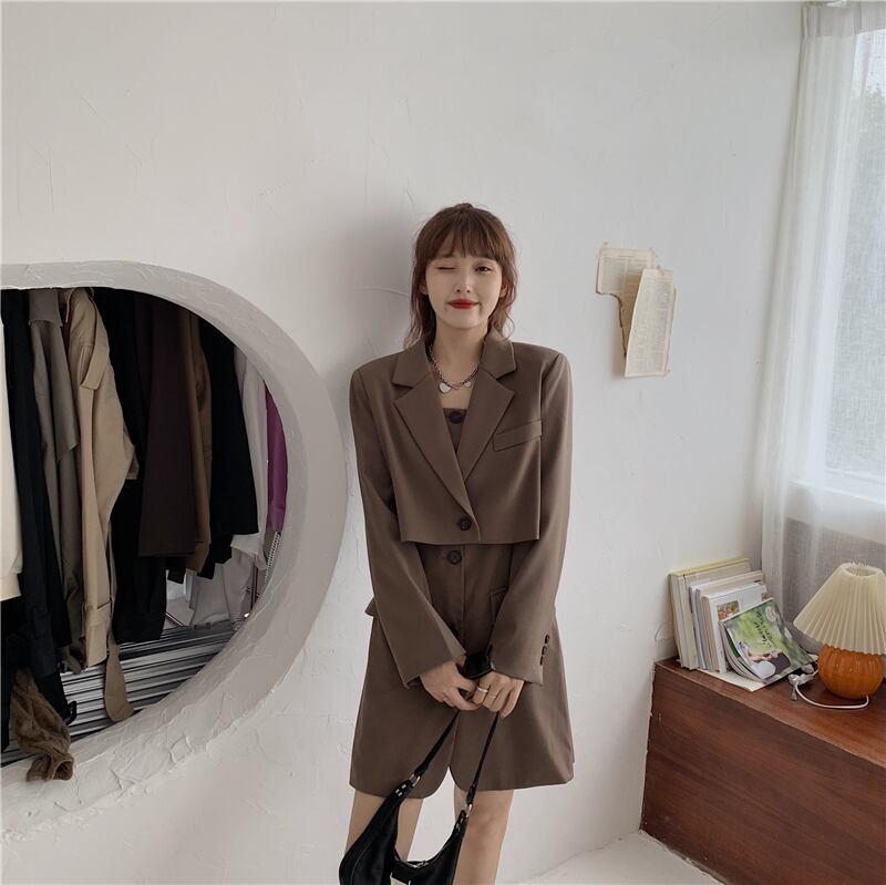 スーツ女性秋/冬2020新しいスタイルの緩いショートスーツジャケット+サスペンダードレスツーピーススーツ クレセントシティ45026944683