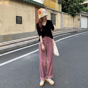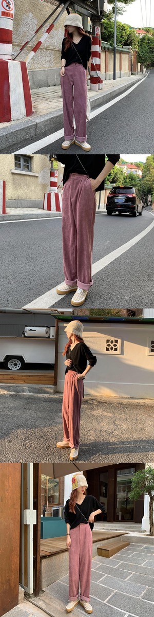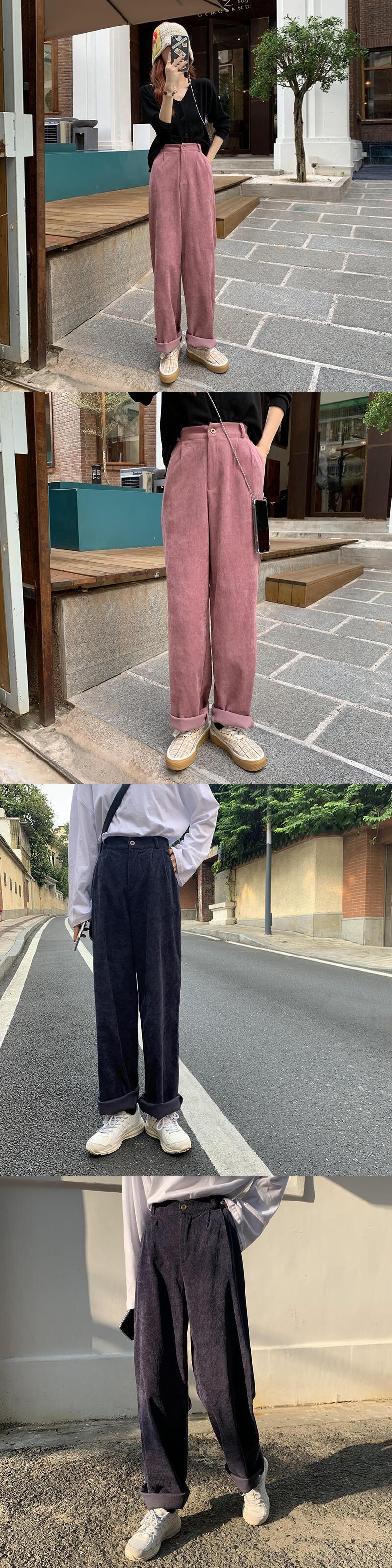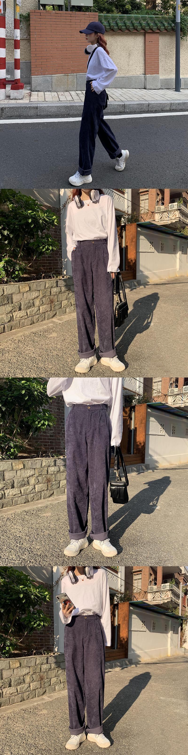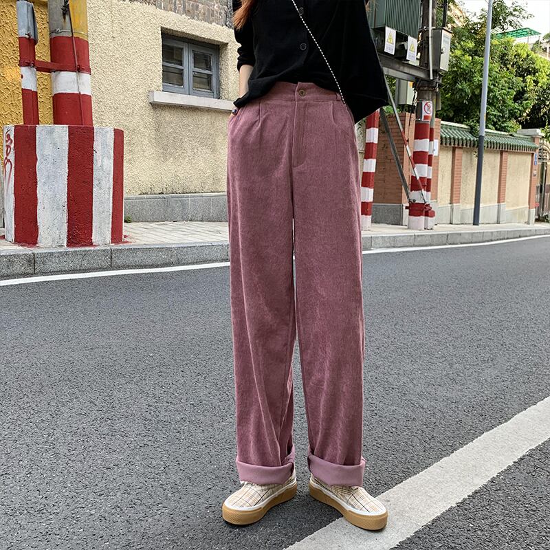 クレセントシティ秋バージョンの緩いコーデュロイワイドレッグカジュアルパンツ女性のハイウエストスリムストレートレッグパンツ学生9ポイントパンツ クレセントシティ8516223923
