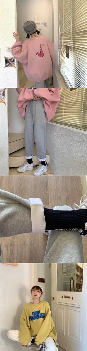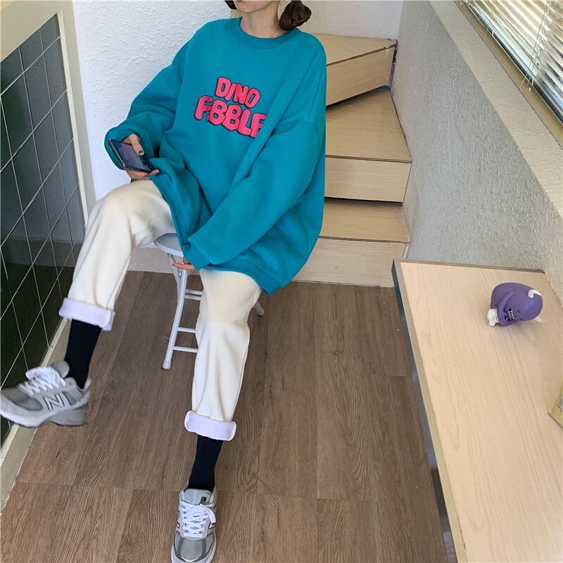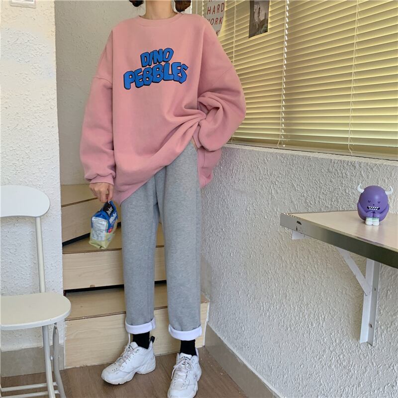 スポーツスーツ女性プラスベルベット厚い秋と冬2020新しい怠惰なスタイルのセーター+ハイウエスト緩いストレートレッグパンツ クレセントシティ30360848165