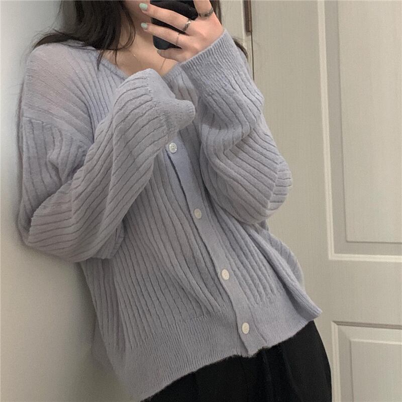 レイジースタイルソリッドカラーセーターシンレディース2020年初秋新入生ルーズカジュアルカーディガンジャケットトレンド クレセントシティ60361380667
