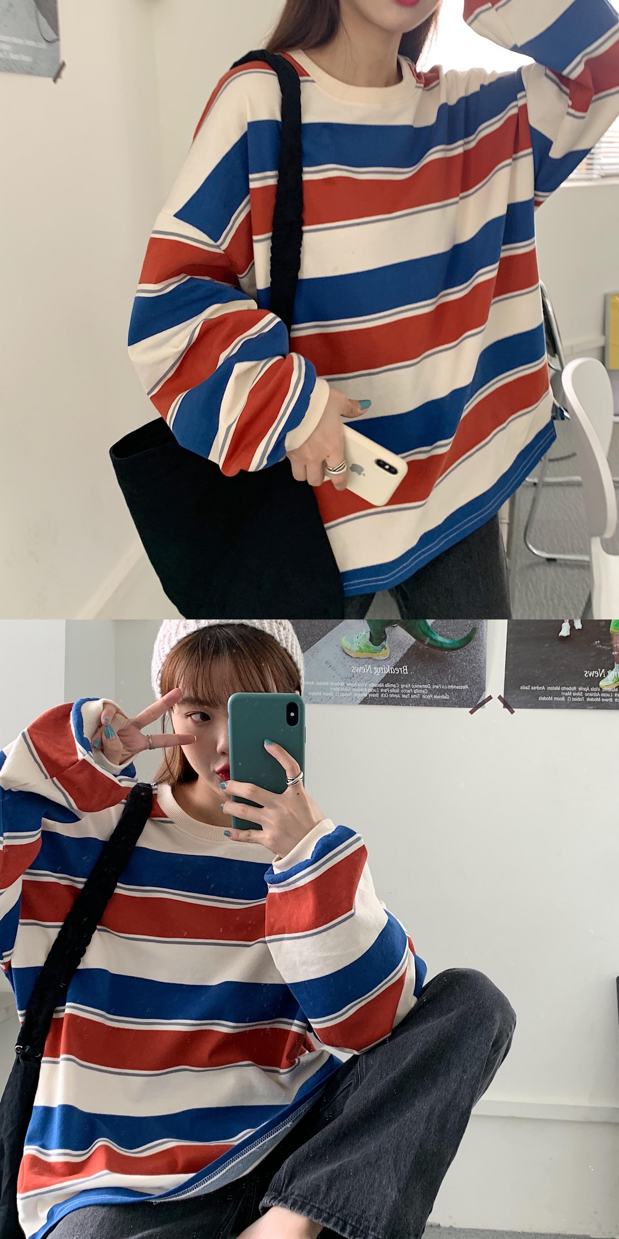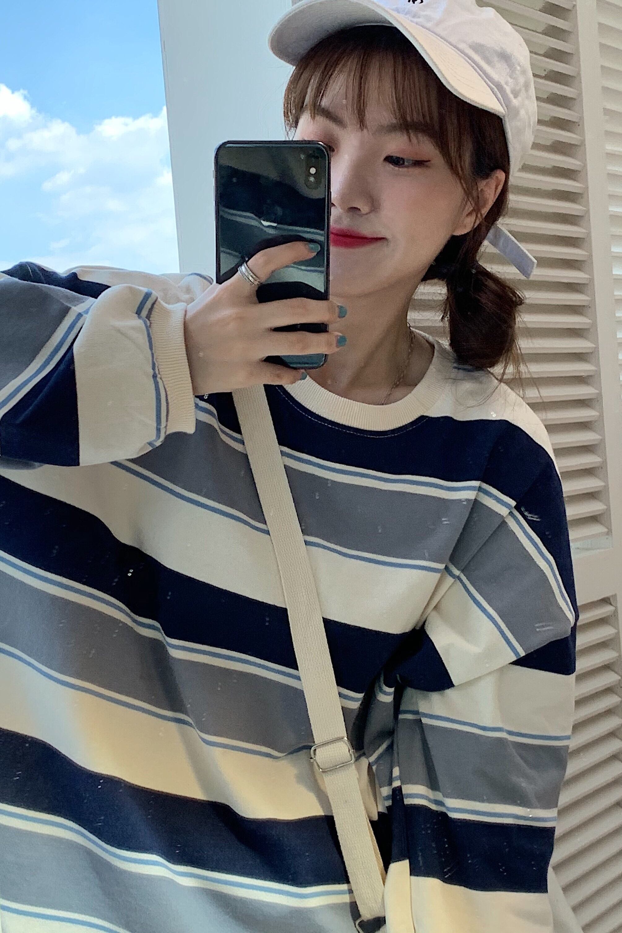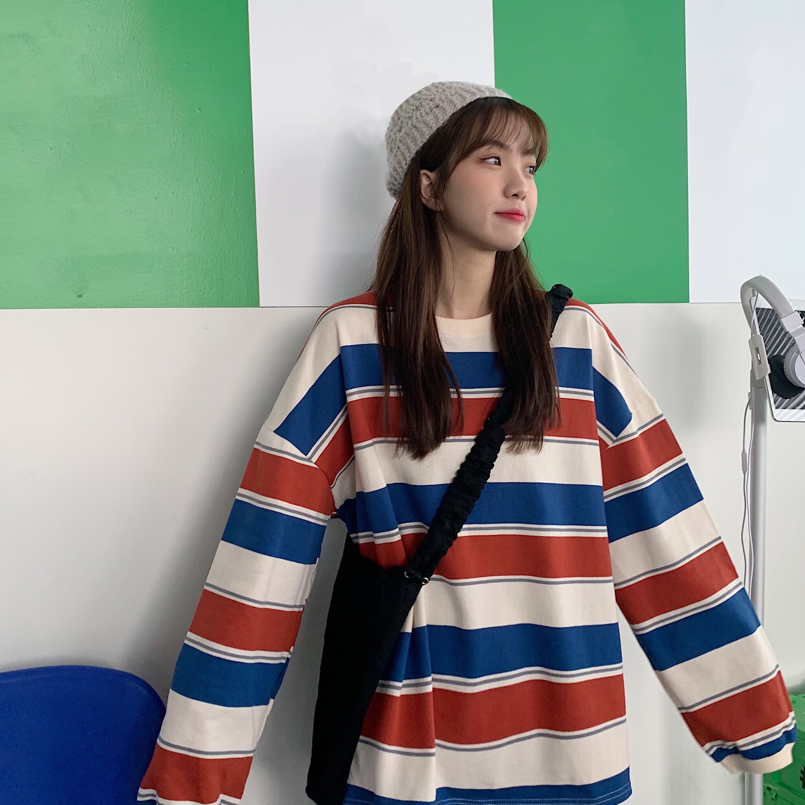 ストライププルオーバーセーターレディース2020年秋新バージョンルーズレトロオールマッチ怠惰な風ミドル丈トップトレンド クレセントシティ49500089180